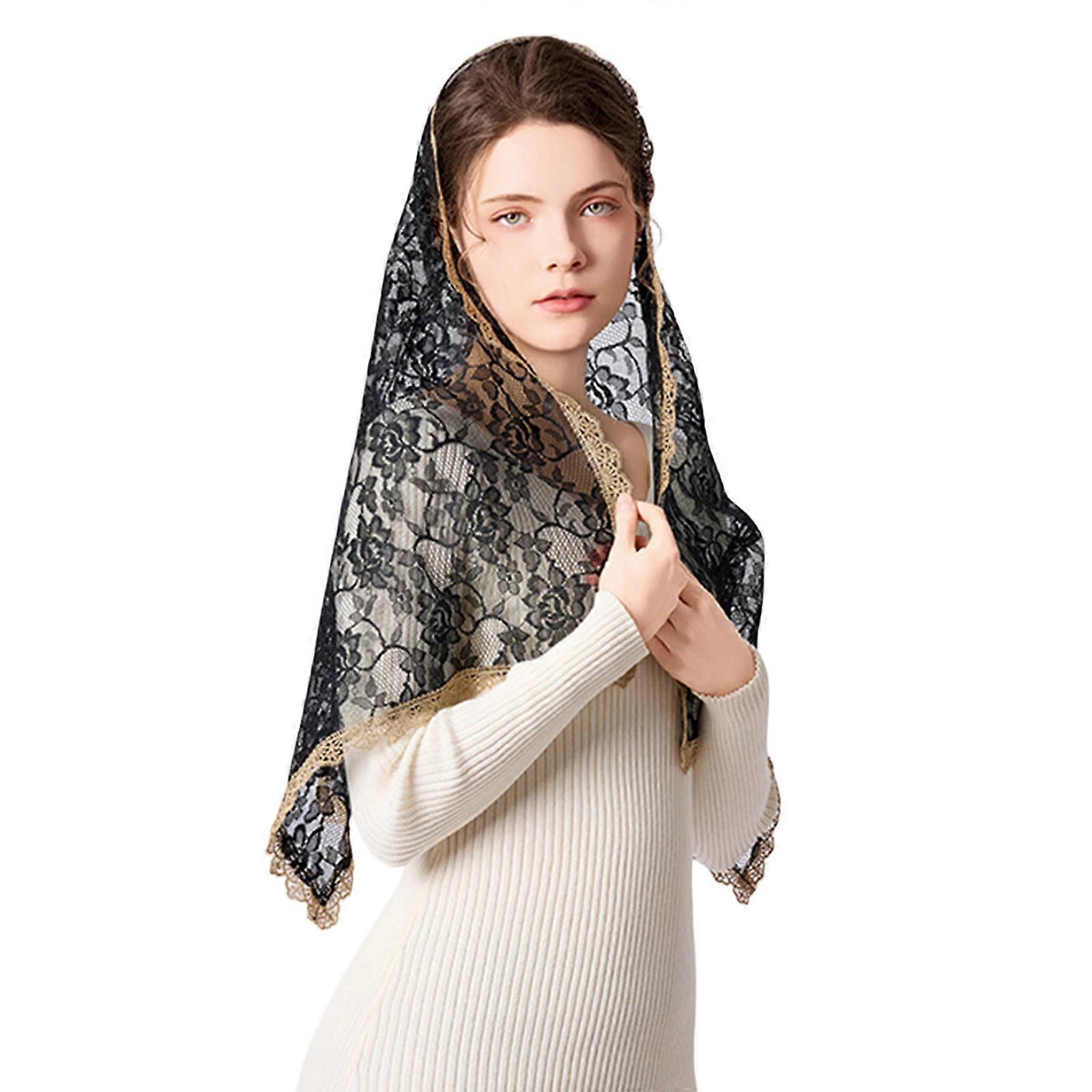 Mantilla Head Cover Breathable Lace Trimmed Scarf Compact Foldable Design Ideal For Outside Trips And Prayer Multicolor