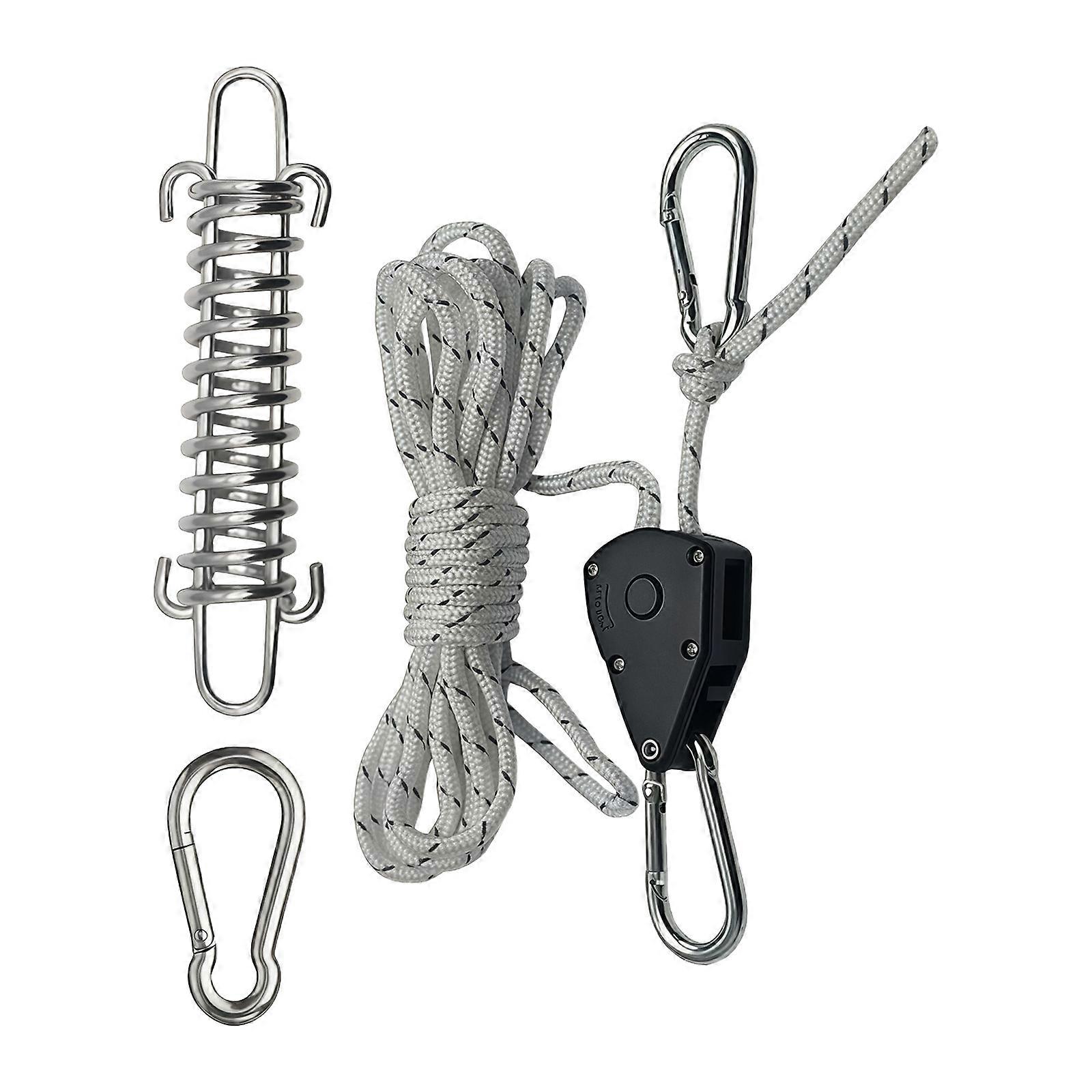 Multipurpose Outdoor Cord System with Pulley Spring Clasp and Metal Hook Fastening Rope Suitable for Stable Tent Guyline White