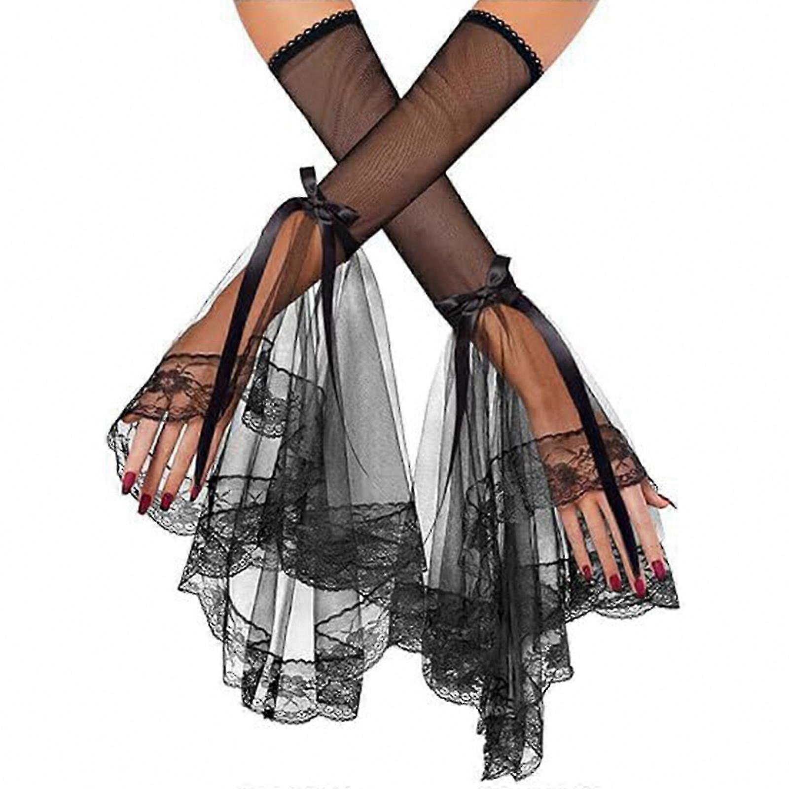 Victorian Gothic Lace Gloves for Women - Elegant Long Sleeves Party Accessory - Breathable Polyester - White