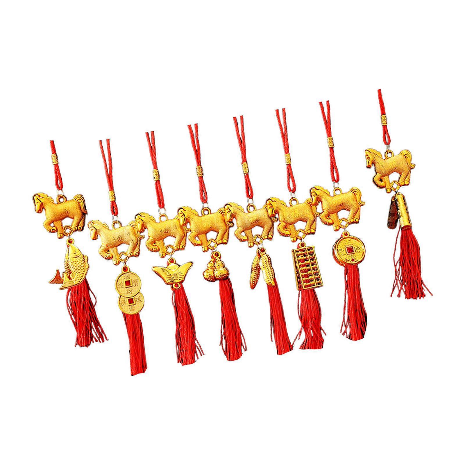 8Pcs Horse Themed Plastic Ornament Chinese New Year Decoration for Door Handle Window Tree Wall Festival Decorations Multicolor