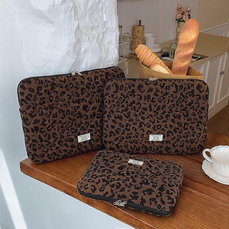 Fashion Casual Leopard Argyle Quilted Laptop Bag Oxford Briefcase Soft Shockproof Multi-Size Zipper for Office Commute