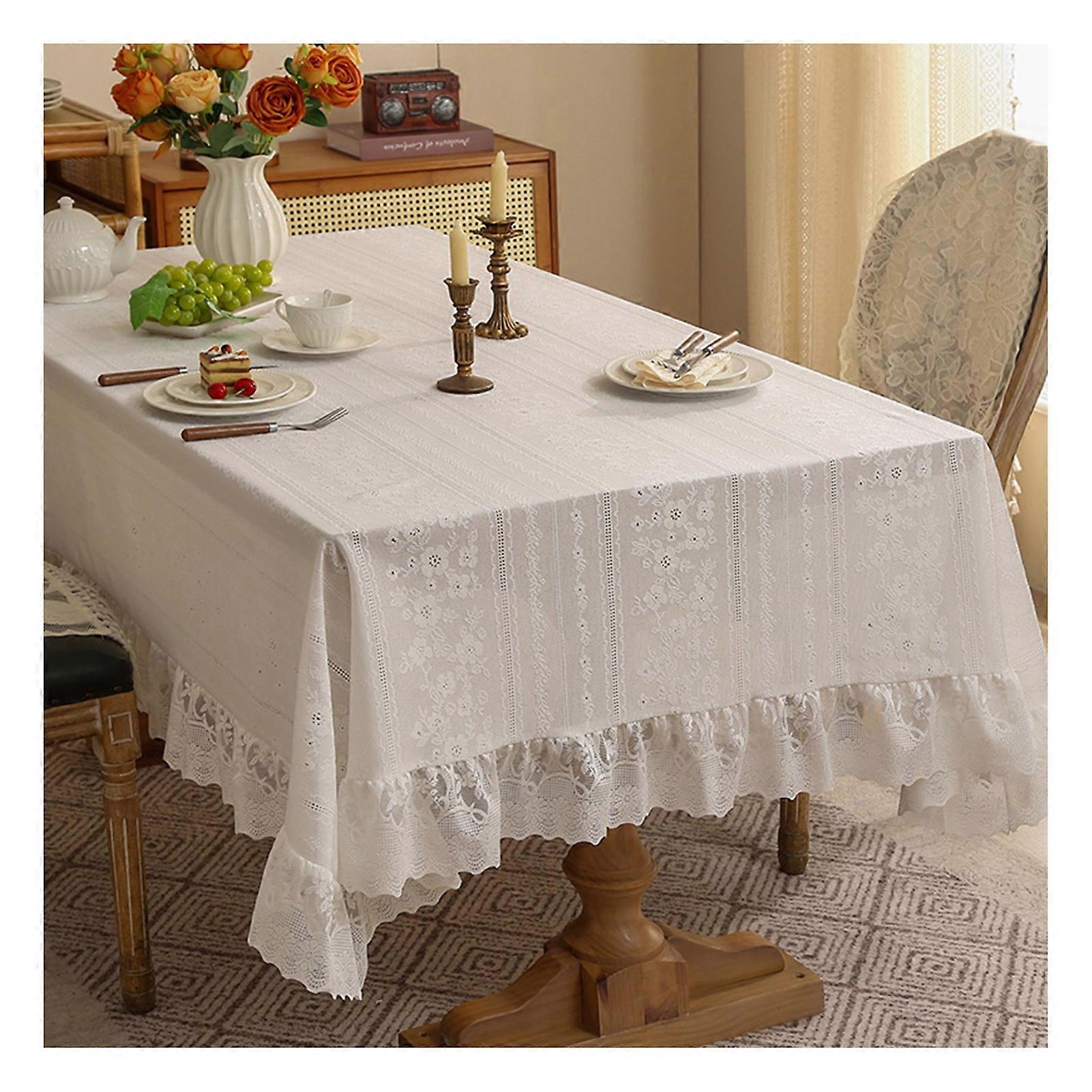 Vintage Lace Tablecloth Ruffle Design Washable for Weddings, Parties, and Dining Table Decor