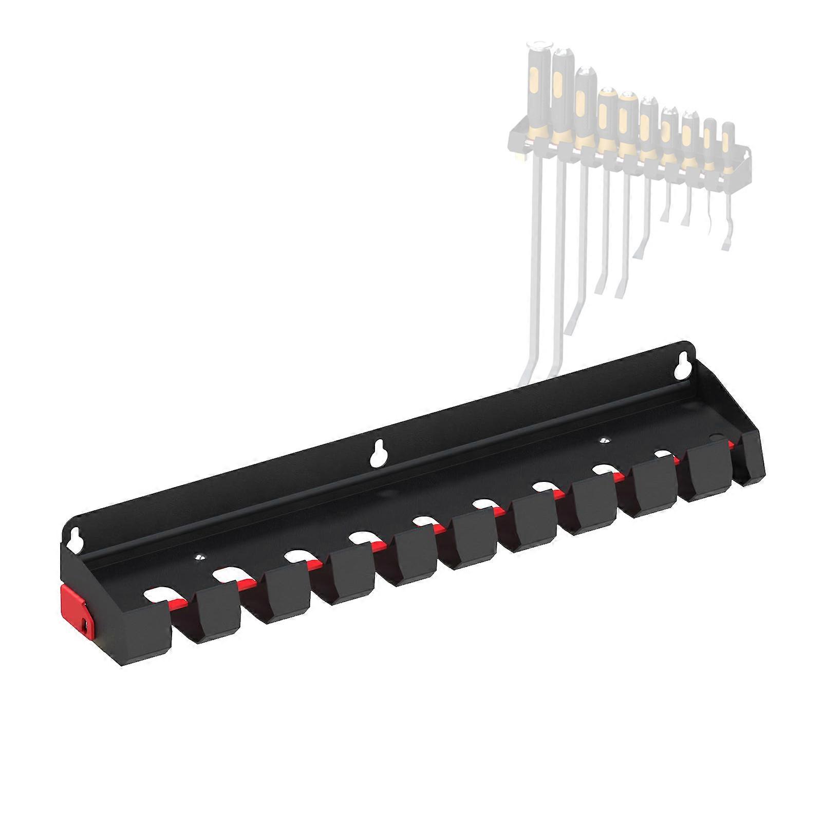 Features: This wall mounted tool holder efficiently organizes pry and long tools, saving space and eliminating clutter to boosts productivity any workspaces. Featuring a secure locking mechanism with keyhole design for added safety, metal construction with powder coating to resist bending, and easy installation with pre drilled holes for quick wall mounting. Ideal for homeowners, enthusiasts, workshop professionals, and warehouse workers seeking tool storage solution to keep their equipment secure and accessible. Designed for versatiles use garages, workshops, home tool sheds, or any space where organized storage of pry , long handled tools, and extension rods is essential. With its robusts locking storage rack design, this organizers ensures tools stay firmly place while accommodating a wide ranges of items for enhanced efficiency and safety. Specifications: Product name: Wall hanging tool storage rack Color: black materials: metal (powder process) Installation methods: wall mounting Product Dimensions: 315"D x 16.85"W x 2.48"H (approx.) Capacity: Can store about 10-13 pieces of pry or similar tools Weight: Approx. 2.2 (approx. 1kg) Package Includes: Wall-mounted tool storage rack and installation accessories (tools not included) note: Pay attention to the storage methods.