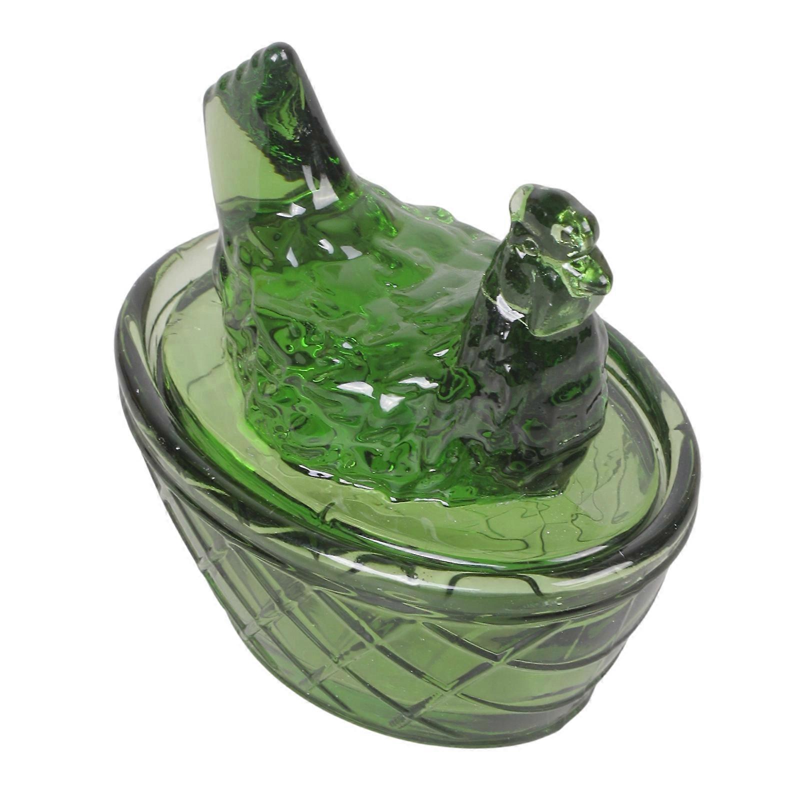 Multipurpose Glass Hen on Nest Miniature Figurine with Lid Decorative Piece for Living Room Bedroom Accent Easter Gift Emerald Green