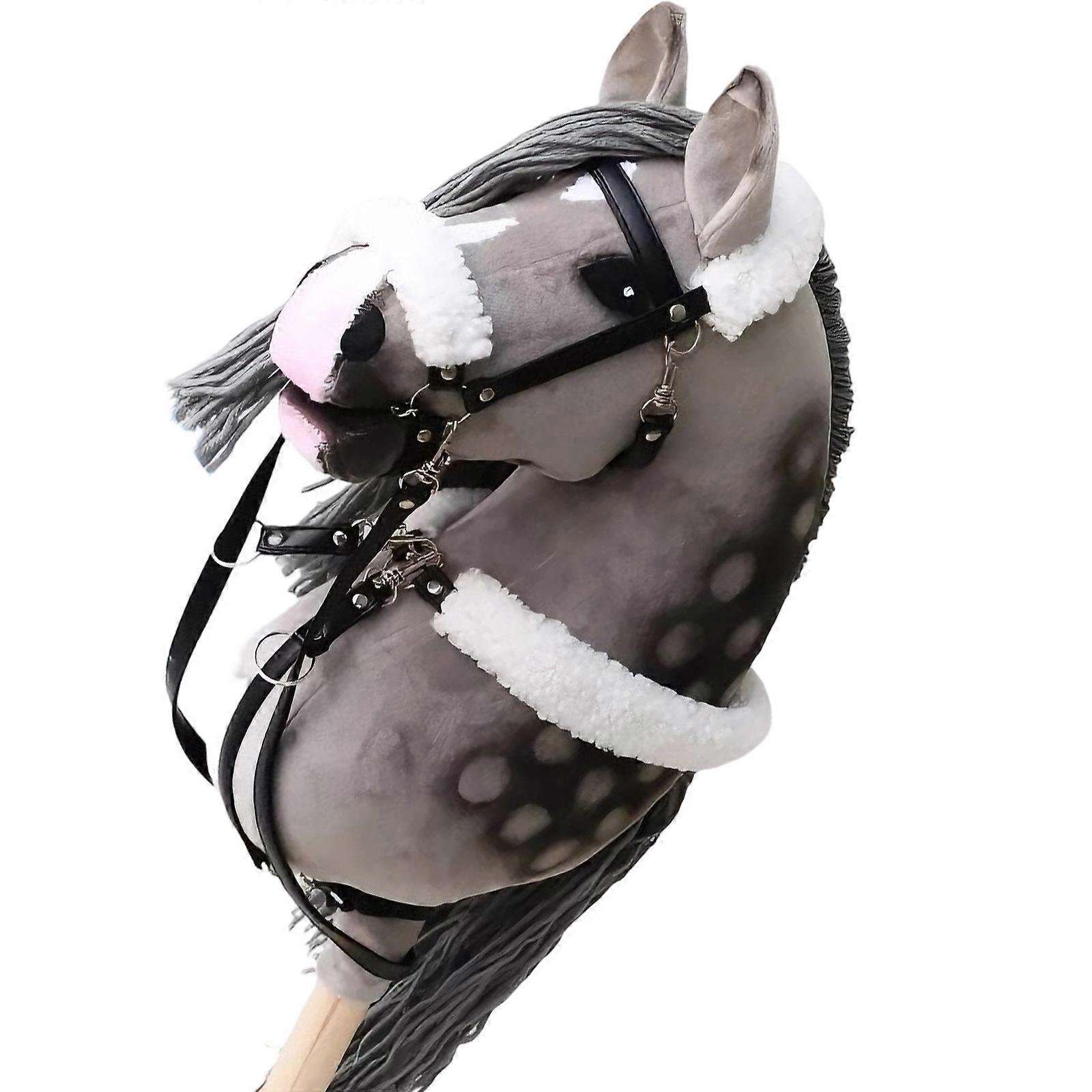 Plush Hobby Horse with Wooden Handle Cartoon Hobby Horse Racing Toy Perfect for Preschool Performances and Safe Play Gray