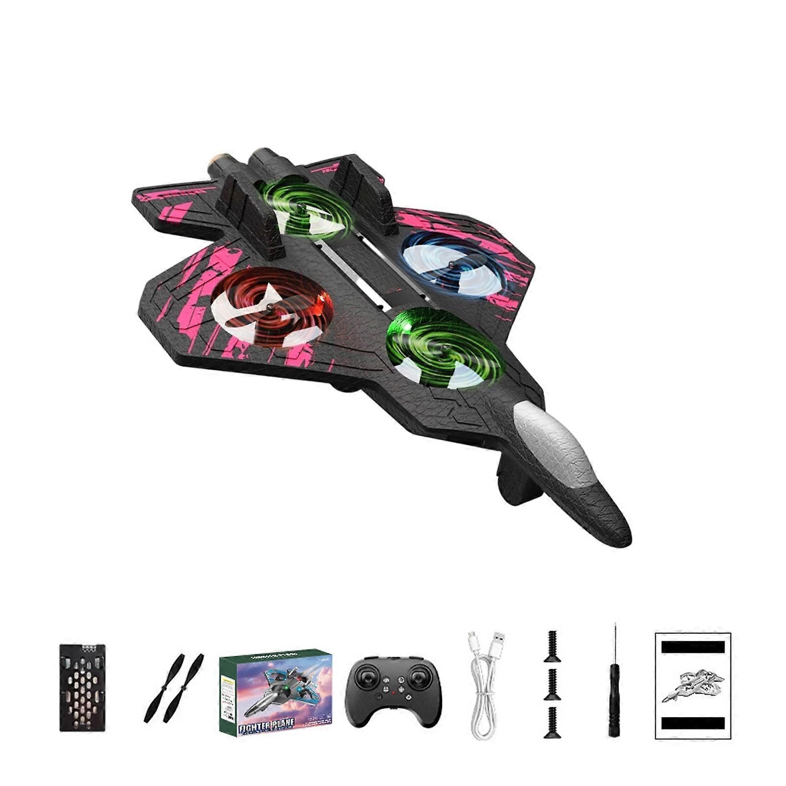 Realistic Jet Design Stunt Drones Featuring Colorful LED Lights 360 Attraction Flips & Strong Foam Body for Indoor Outdoor Pink