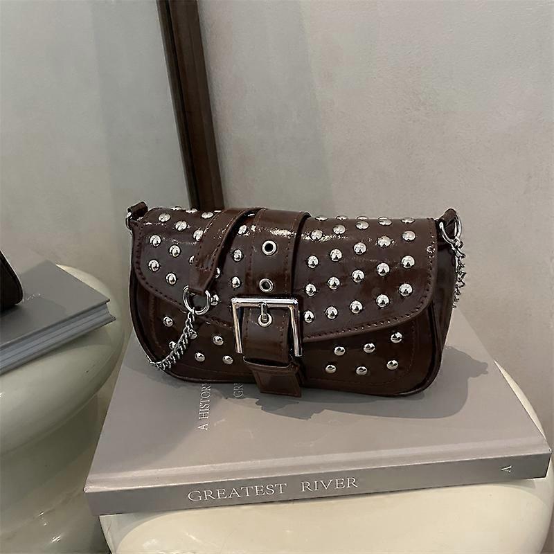 Trendy Underarm Shoulder Bag Solid Color PU with Stud Accents Lightweight Magnetic Waterproof Chain Strap Handbag for Daily Use