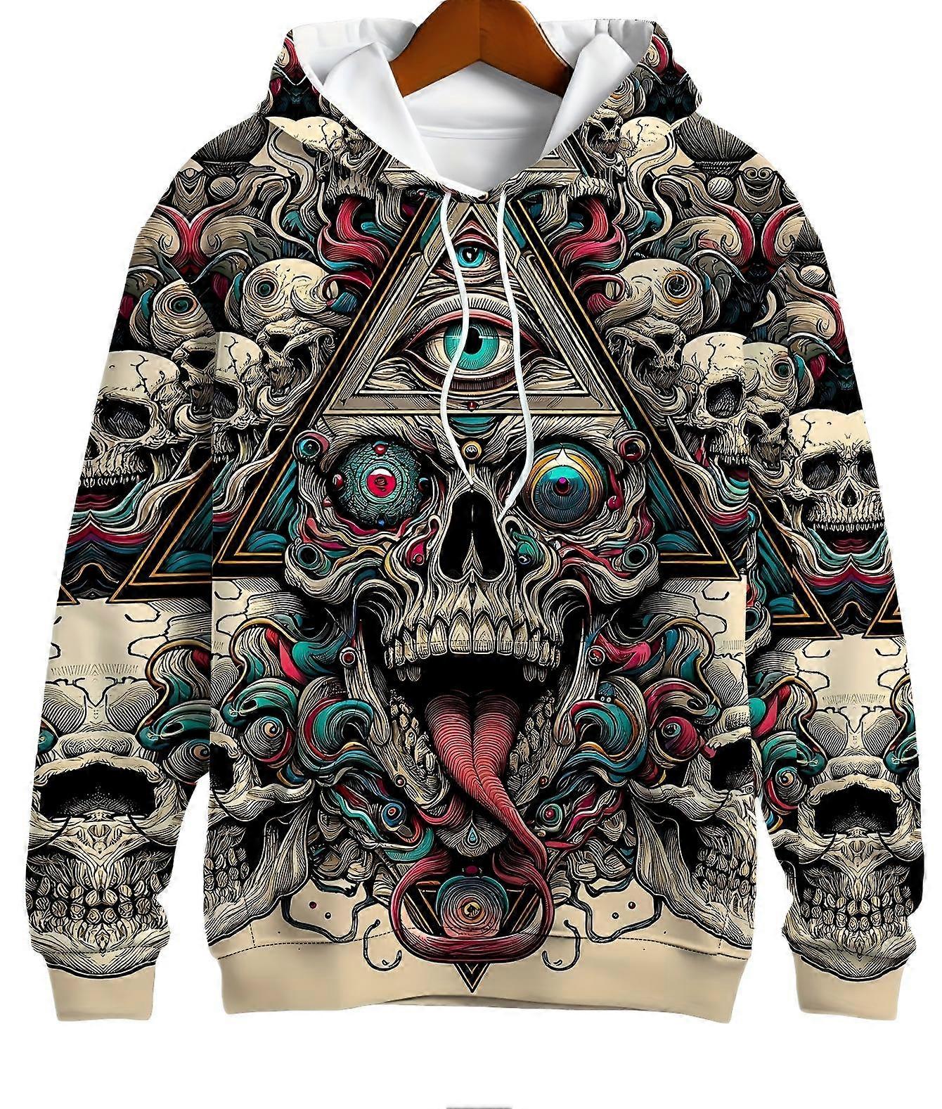 Men’s Psychedelic Graphic Hoodie All Seeing Eye Skull Print Casual Streetwear Pullover