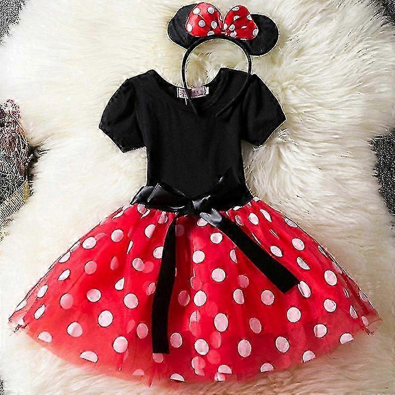 Girls Polka Dot Tulle Tutu Dress with Bowknot Headband for Birthday Party Fancy Dress Cosplay Outfit