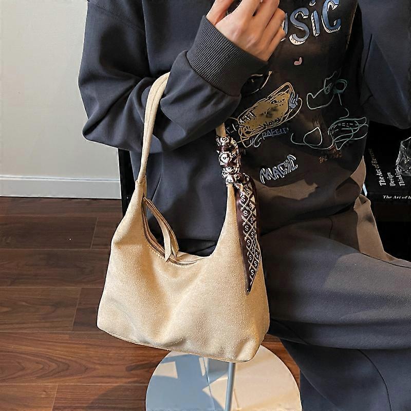 Ladies Chic Underarm Bag Solid Color Silk Scarf Decoration Lightweight Zipper Easy Organize Wear Proof for Daily Shopping