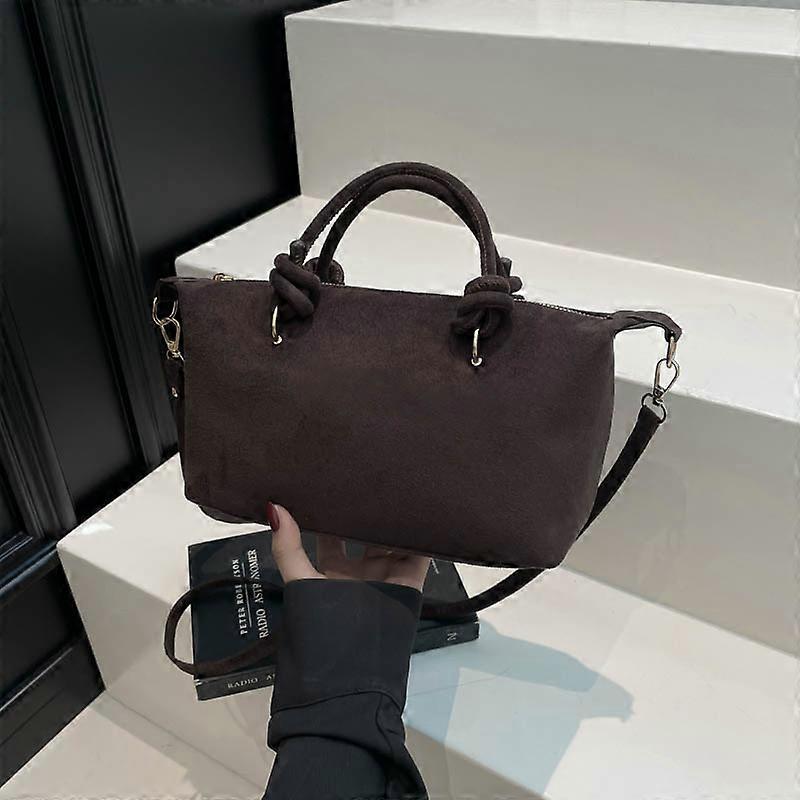 Vintage Matte Suede Shoulder Bag Solid Color Lightweight Large Capacity PU Zipper Adjustable Strap for Daily Commute & Shopping