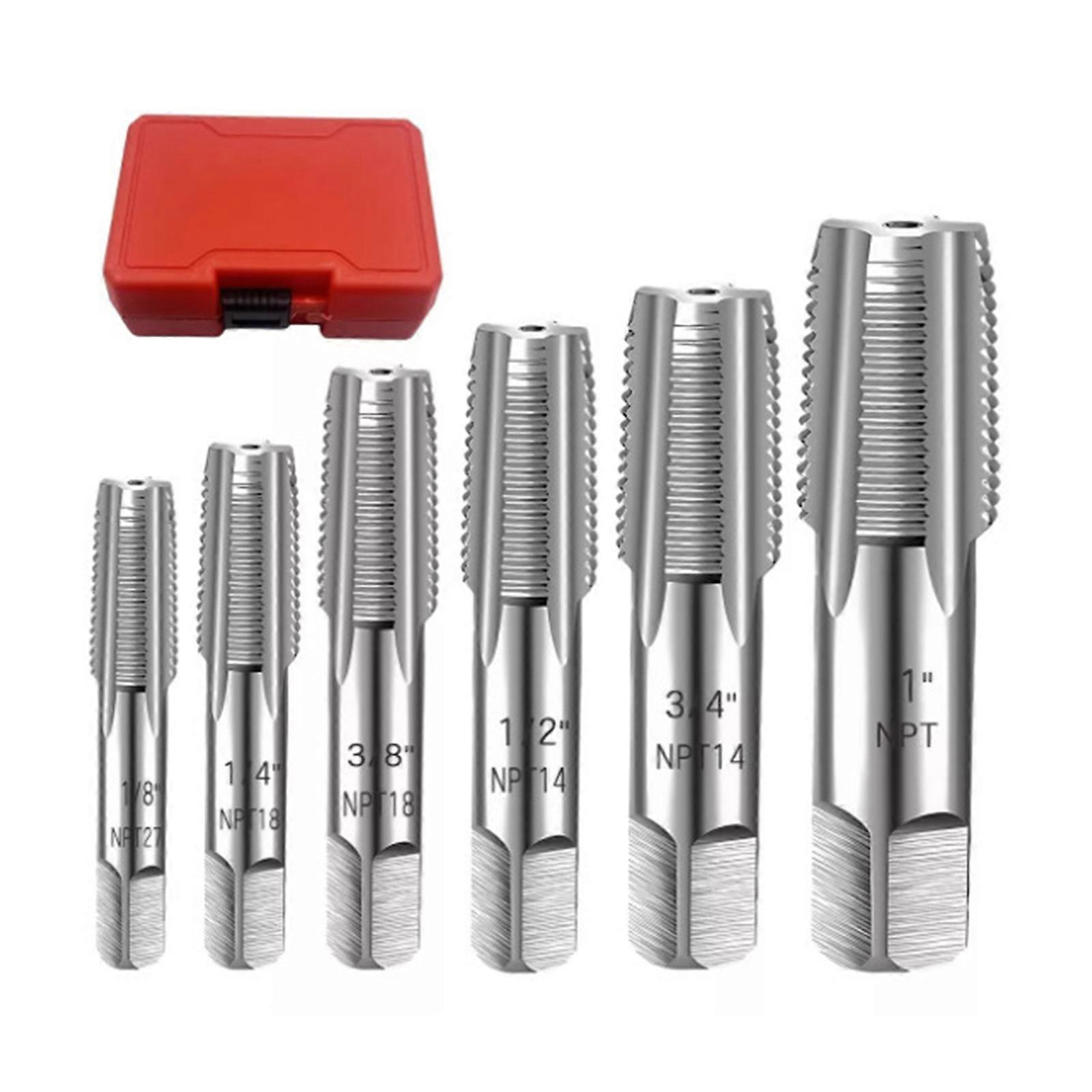 Pack of 6 Professional NPT Pipes Tap Set Carbon Steel Hand Tap for Thread Repair DIY with Storage Case Multicolor
