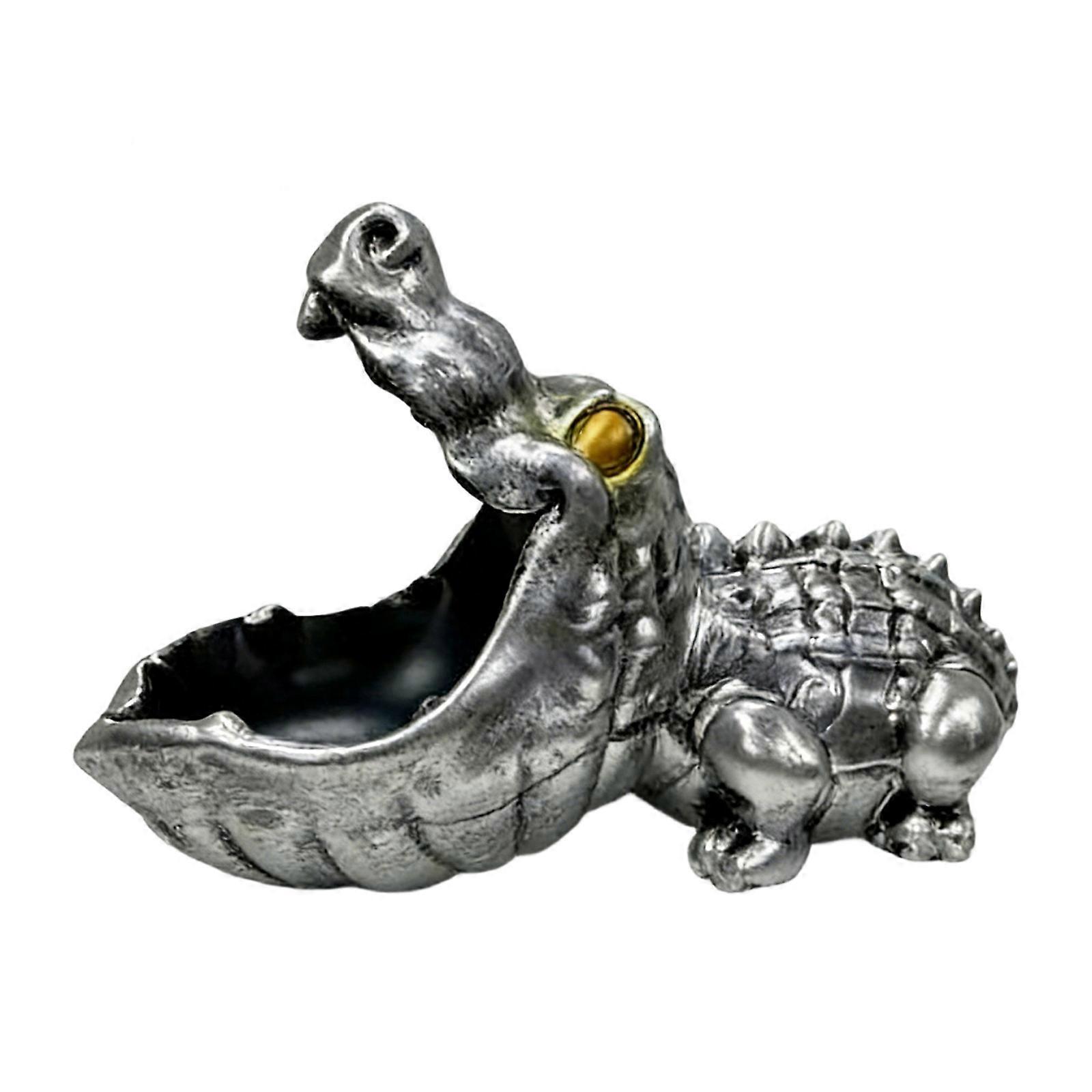 Fun and Practical Alligator Shape Resin Candy Dish Key Holder for Entryway Table or Kids Room with Decorative Touch Silver