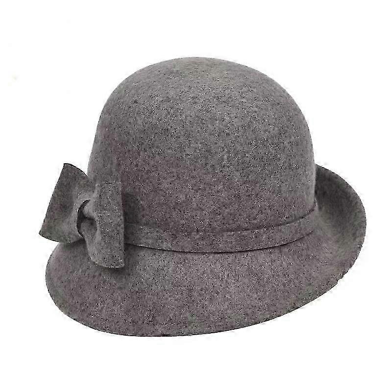 Woman's Elegant Winter Fedora Hat: 100% Wool Felt Cloche Hat with Up-turn Brim & Bowknot - Ideal Mother Gift, Suitable for Lady
