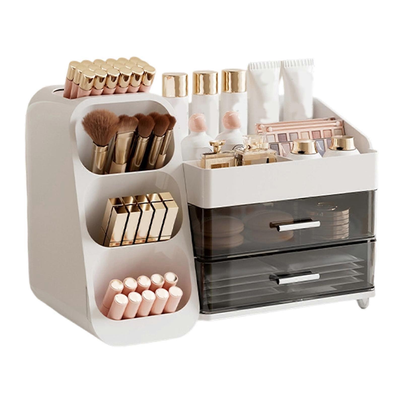Cosmetic Organizers Multiple Compartments Design Lipstick Skincare Practical ABS Makeup Display Case Beauty Essential Box White