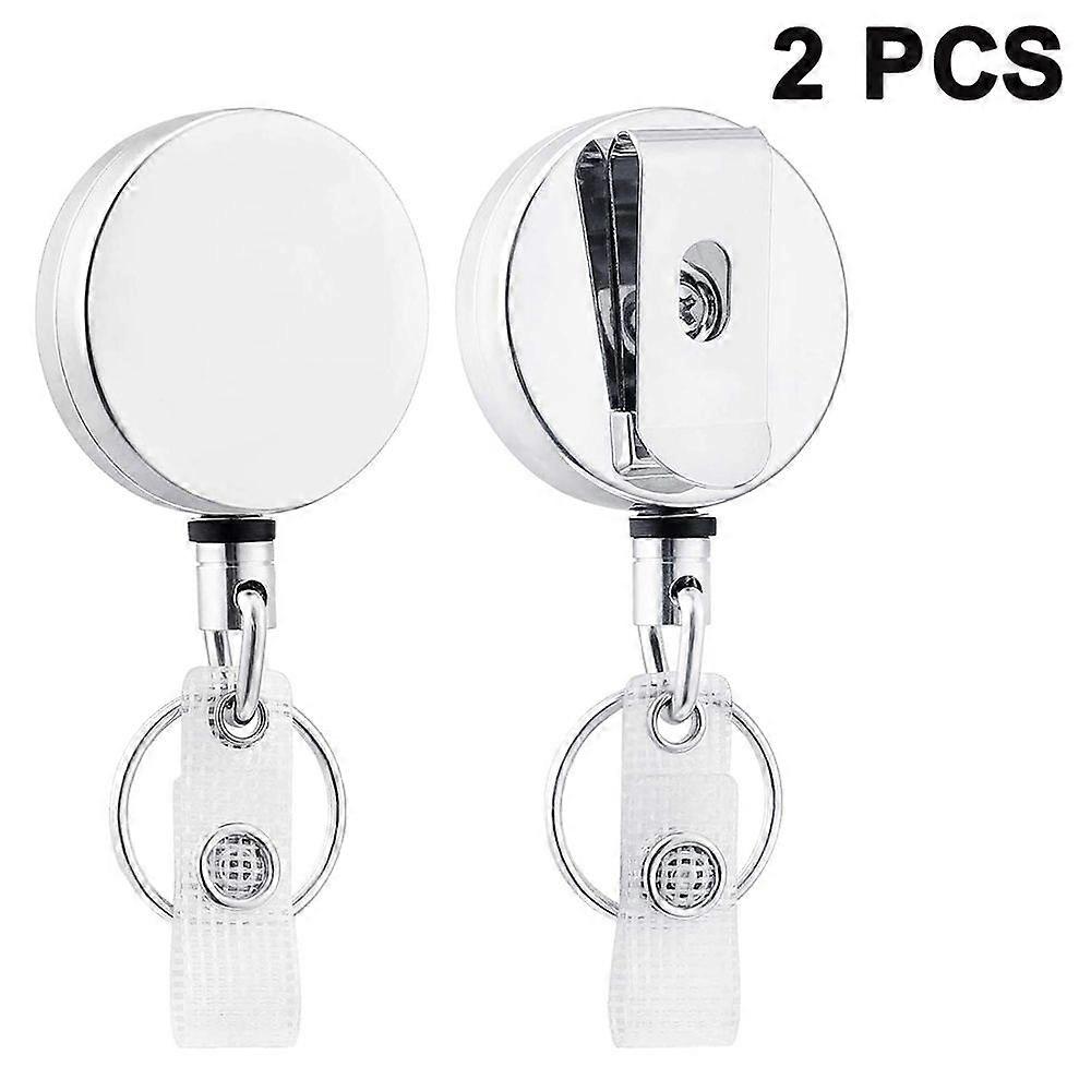 Self-retracting badge holder keychains, heavy-duty metal body, steel cord, key ring with carabiner and belt clip, for holding keys and tools
