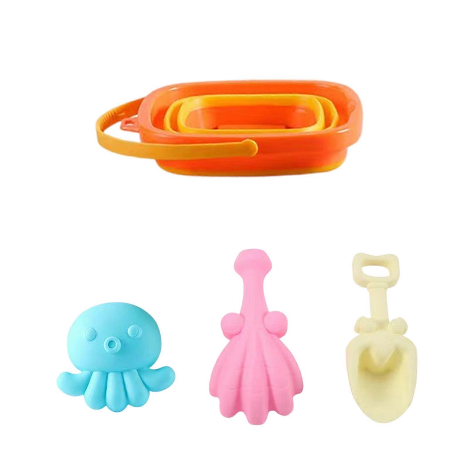 4PCS/Set Animal Mold Sand Toy Portable Children Sand Toy Building Summer Sandcastle Seaside Sand Toy with Rake Shovel orange red