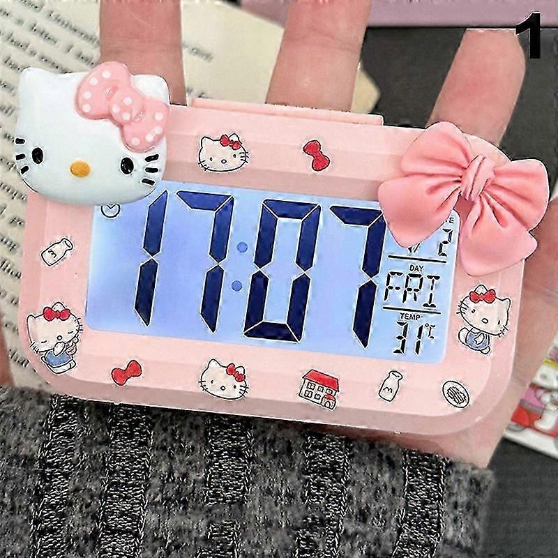 Hello Kitty Alarm Clock, Cartoon Mini Kitty Cat Glow-in-the-Dark Alarm Clock for Kids, Dormitory Desktop Decor, Student Alarm Clock