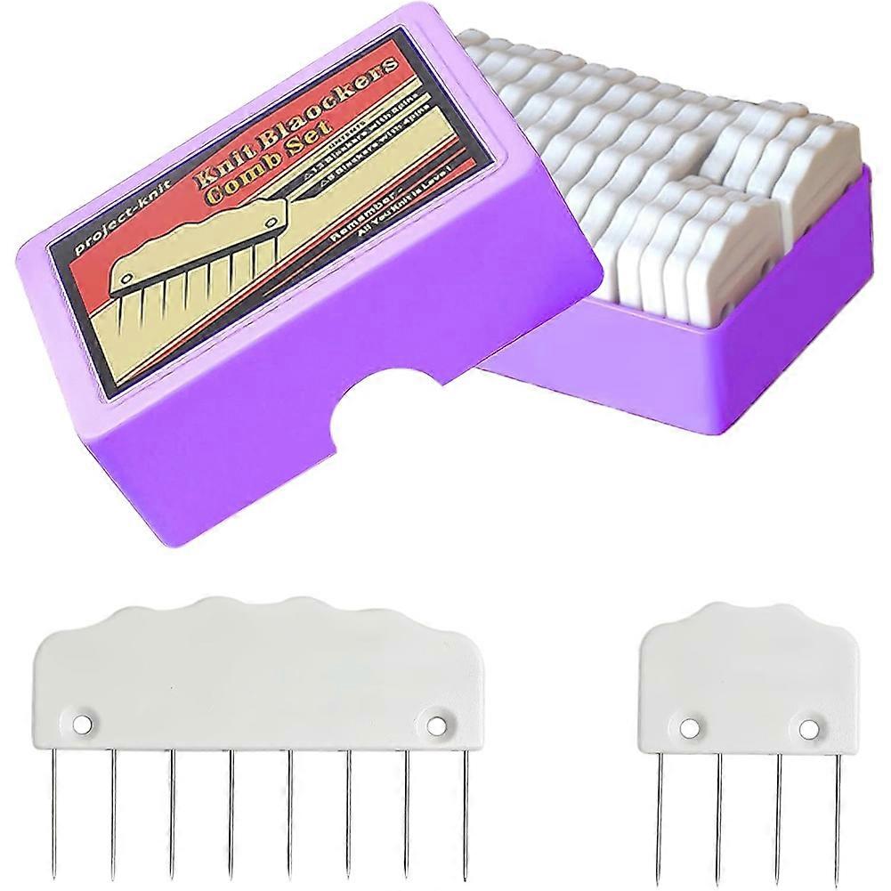 Two knit blockers comb size options: This upgraded knit blocking pin kit includes 8 pcs short 4-stitch combs and 12 pcs long 8-stitch combs, allowing you to choose the ideal length for edges, corners and straight lines. Easily secure your handiwork on blocking mats so projects stay taut, evenly shaped and firmly in place for professional-looking results. Works perfectly with knitting mats: Each knitting blocker pin features a 2cm needle length, specially designed to insert smoothly and securely into standard foam blocking mats. The sturdy multi-pin design grips multiple stitches at once, helping keep crochet, knitting and lace pieces flat and aligned while they dry into the precise shape you want. Save time on blocking projects: Compared with traditional single T-pins that require placing dozens of pins one by one, these knit blocking combs let you anchor long edges and curves in seconds. You can quickly arrange your crochet squares, shawls, sweaters or lacework, greatly reducing blocking time while improving accuracy and consistency on every project. Safety attention and wide application: The blocking pins feature sharp metal points, so please keep them away from children and pets, and store separately from delicate fabrics or items to avoid accidental damage. Ideal for crochet, knitting, sewing, lace needlework and other fiber arts, this kit is a practical tool for beginners and experienced crafters. Color: White Material: Plastic Package Contents: 20pcs Knit Blocking Pin Kit Only the above package content, other products are not included. Note: Light reflection and different displays may cause the color of the item in the picture a little different from the real thing. The measurement allowed error is +/- 1-3cm.