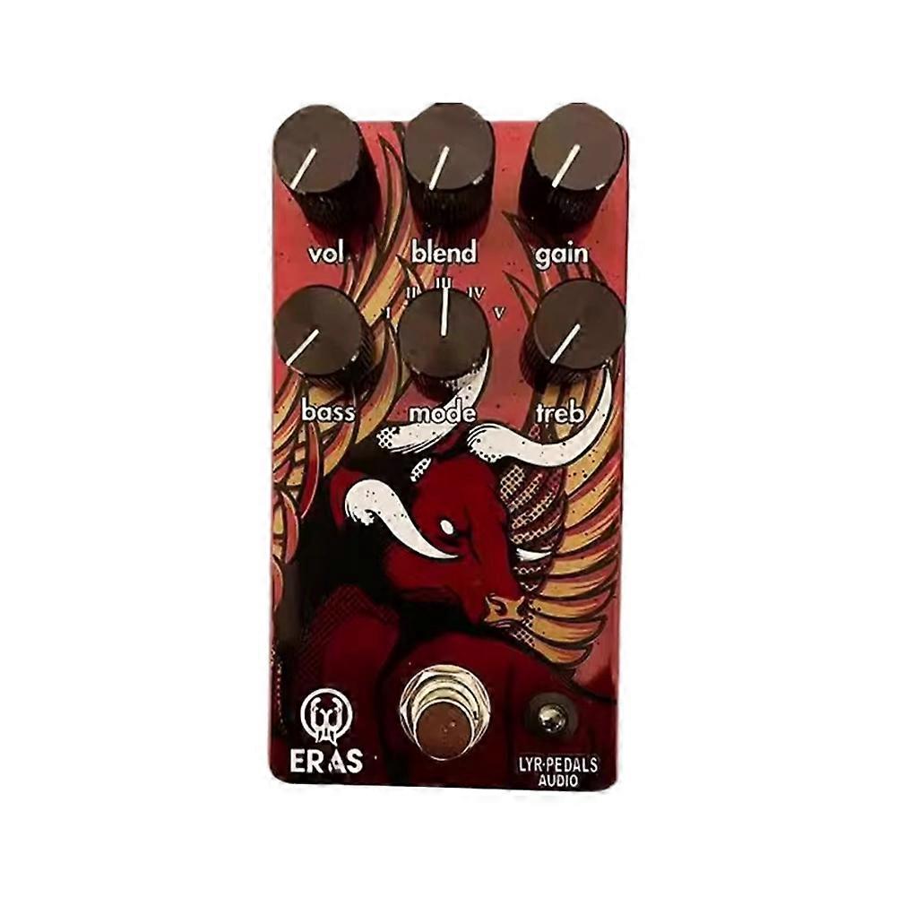 This ERAS abbreviation (Bull) is a 5-mode high gain distortion that is extremely powerful in terms of functionality and adjustability. We can fully handle it with styles, rock, old metal, industrial, rapids, and more! And it can play the hot Riff and tight rhythm sound anytime and anywhere, and you can choose 5 different types of modes according to your own sound needs! He also has a very powerful wet dry ratio adjustment, also known as the BLEND knob, which can be adjusted according to the desired music style. This pedal is equivalent to a box containing 5 high gain distortions, which can be selected through MODE to adjust the distortion mode. Each mode has volume gain, wet dry ratio, low frequency, and high frequency controls that can be combined for use. Equipped with a BLEND knob, it allows for free mixing of dry and distorted signals, achieving a smooth transition from clear original sound to powerful gain, creating rich and varied tonal layers, making it more suitable for live performances and recording production! Durable metal casing, stable and reliable for stage performances; simple interface, plug and play, easily integrates into your effects chain! The five high gain distortion modes of ERAS are as follows: 1. Exquisite distortion tone, slight mid-range reduction, built-in volume control, providing fast response and excellent sound control 2. Tight distorted tone, a little bit. Mid frequency reduction, slightly compressed and smooth tone 3. A slight reduction in mid-range, resulting in a rich and distorted sound full of sustain 4. Deeper mid-range reduction, built-in volume control, tighter tone, and tight response are more suitable for rhythm guitars 5 Deeper mid-range cuts, fuller and warmer rhythm sound Color: Red Material: Metal Package Contents: 1 * Guitar Effects Pedal Only the above package content, other products are not included. Note: Light reflection and different displays may cause the color of the item in the picture a little different fr