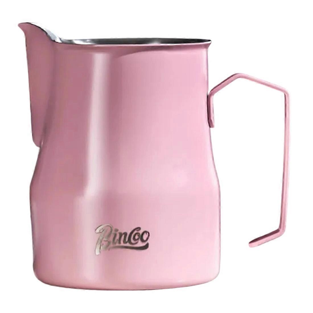 Bincoo Round Base Coffee Frothing Pitcher 300/450ml Pink Stainless Steel with Volume Markings for Home Cafe V