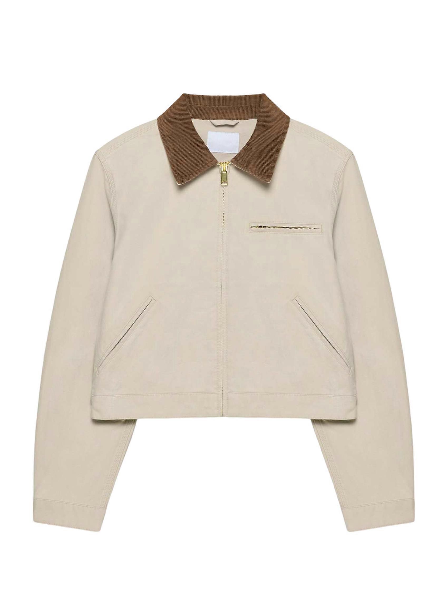 Cropped Jacket Women Long Sleeve Lapel Neck Zip Up Jackets for Women Light Gray M