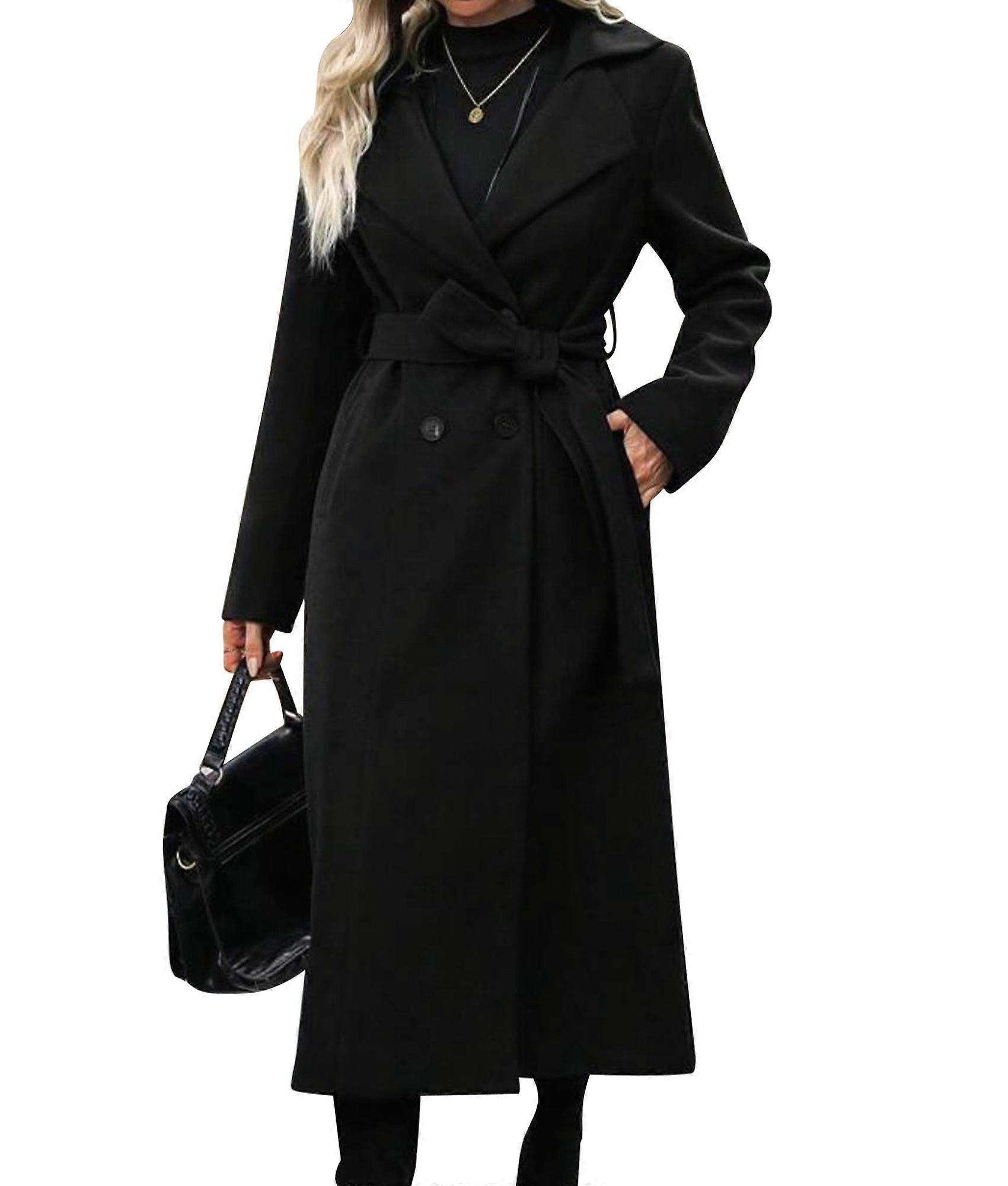 Female Long Wool Coats Fall Winter Double Breasted Trench Coat Peacoat Black M