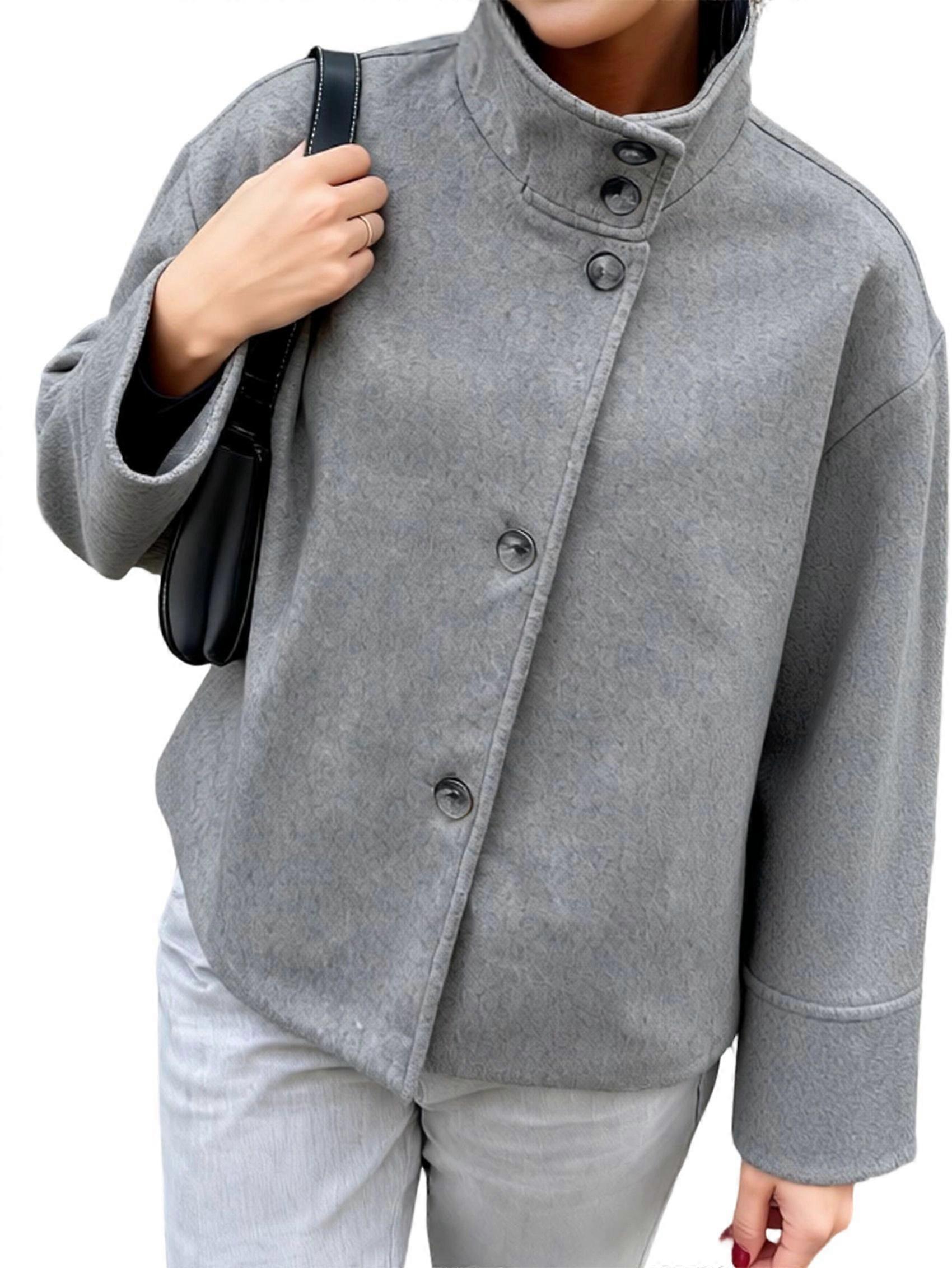 Women Crop Pea Coat Winter Loose Casual Short Jacket Outwear Gray M