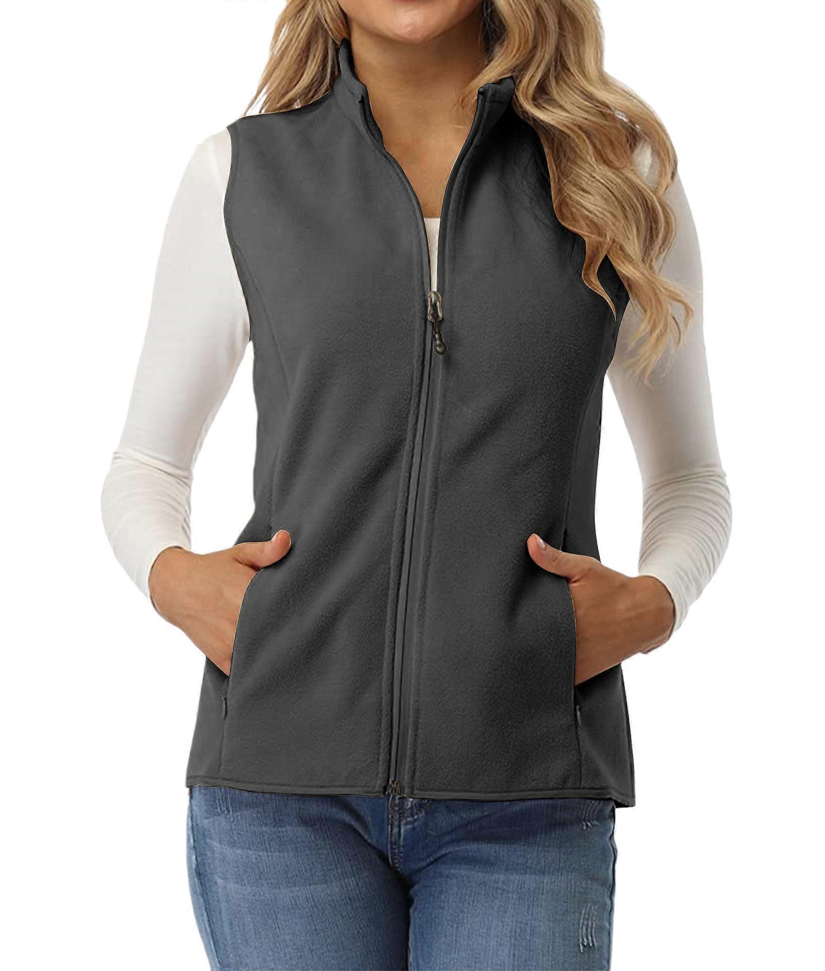 Women'S Fleece Vest Soft Sleeveless Classic Fit with Zip Up Pockets Dark Gray L