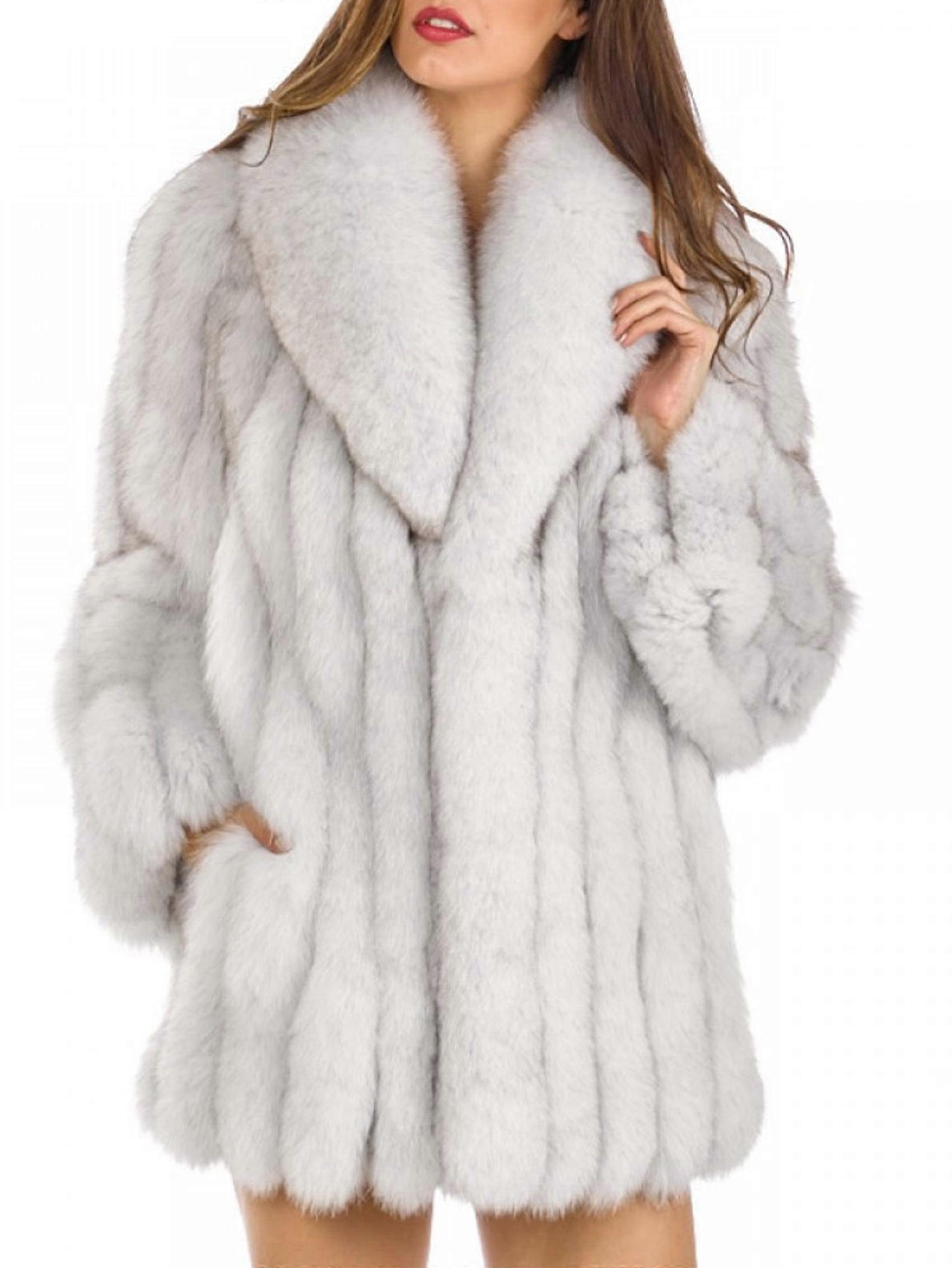 Womens Fuax Fur Coat Winter Warm Faux Fur Parka Jacket Thick Plus Size Outerwear Overcoat Silver Fox Color L