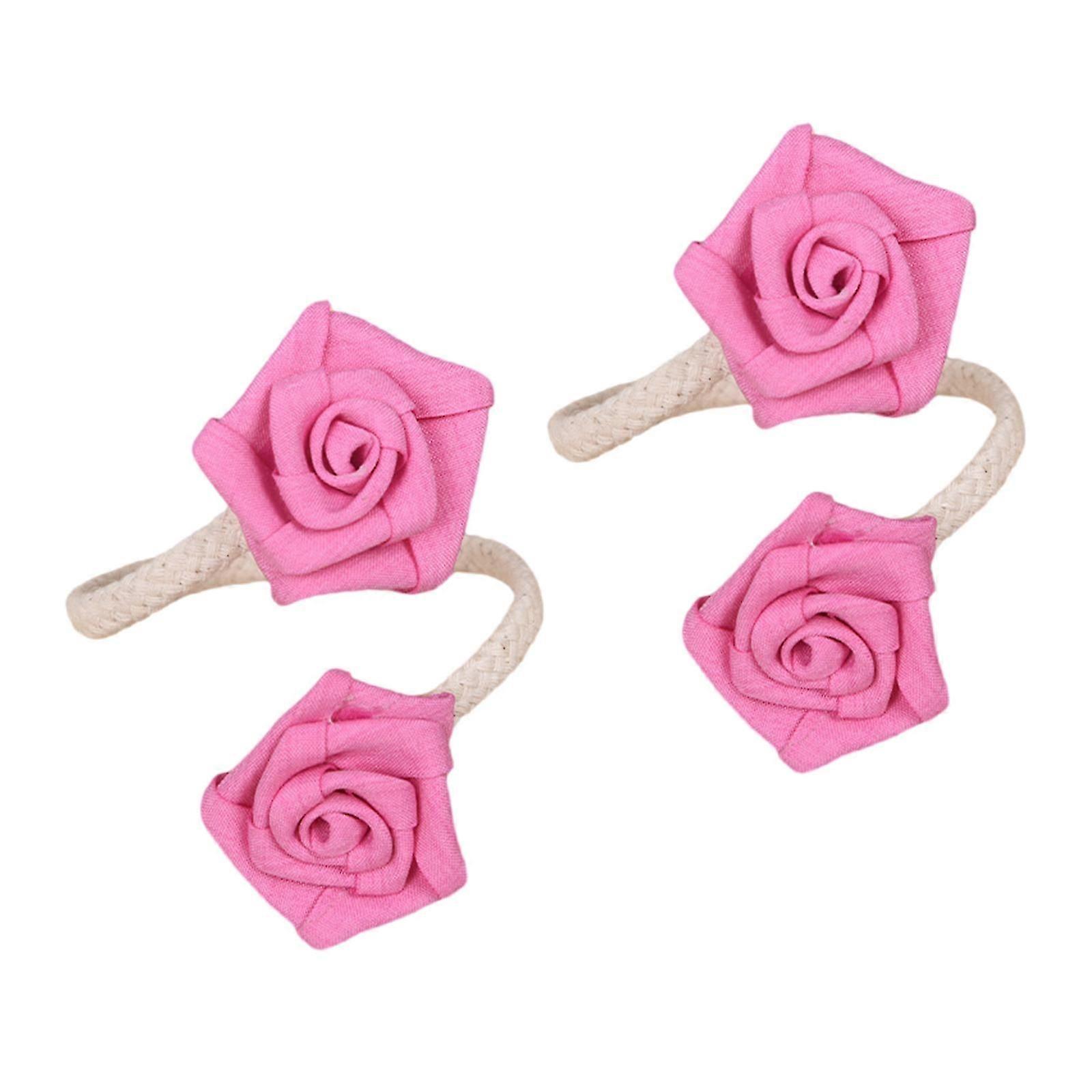 Decorative Floral Fabric Curtain Tiebacks 2Pieces Flexible Holdbacks Adjustable Window Decors for Home Living Room Rose red