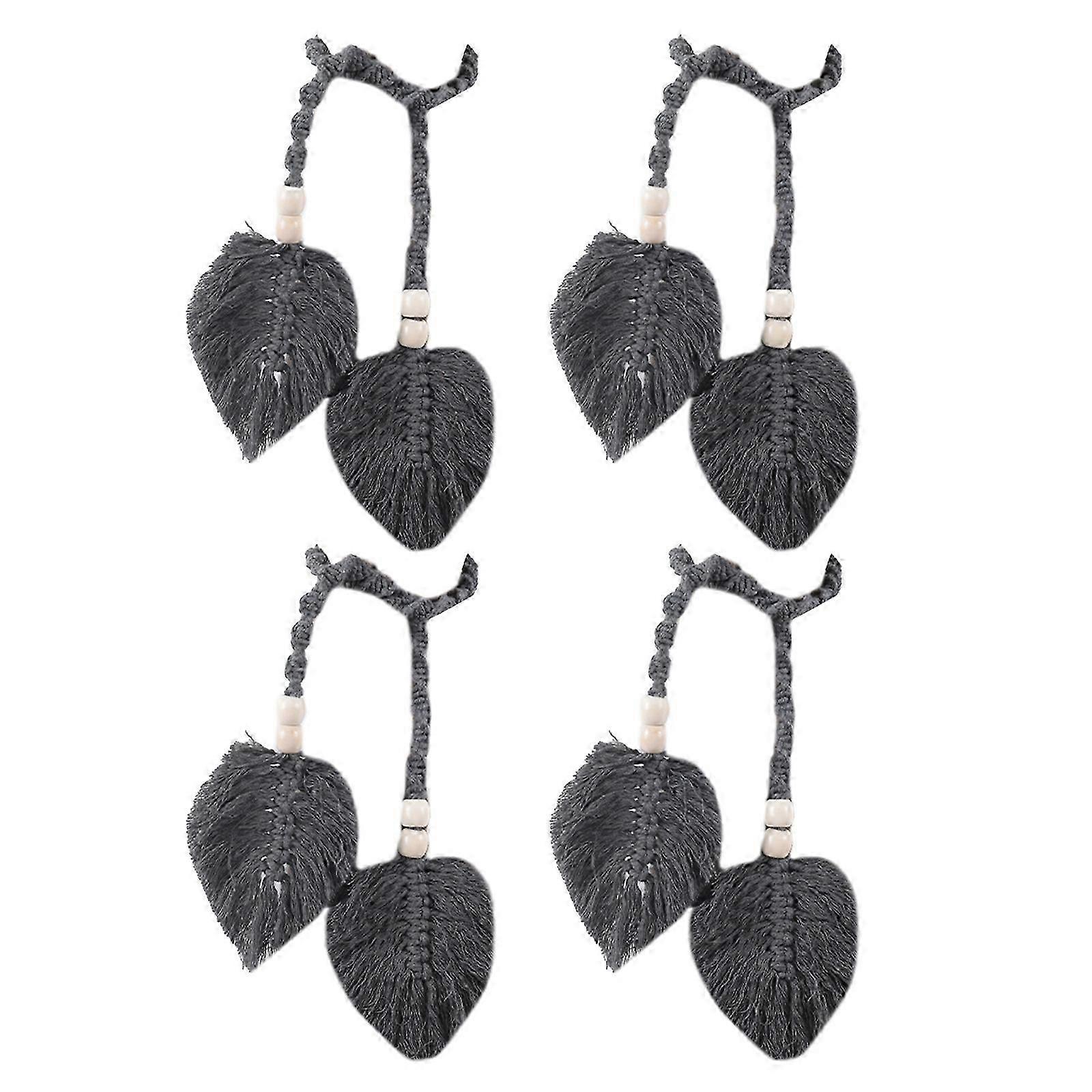 4Pcs Leaf Shape Curtain Tiebacks, Cotton Rope Curtain Holdbacks Home Decoration for Living Room Bedroom Dark Grey