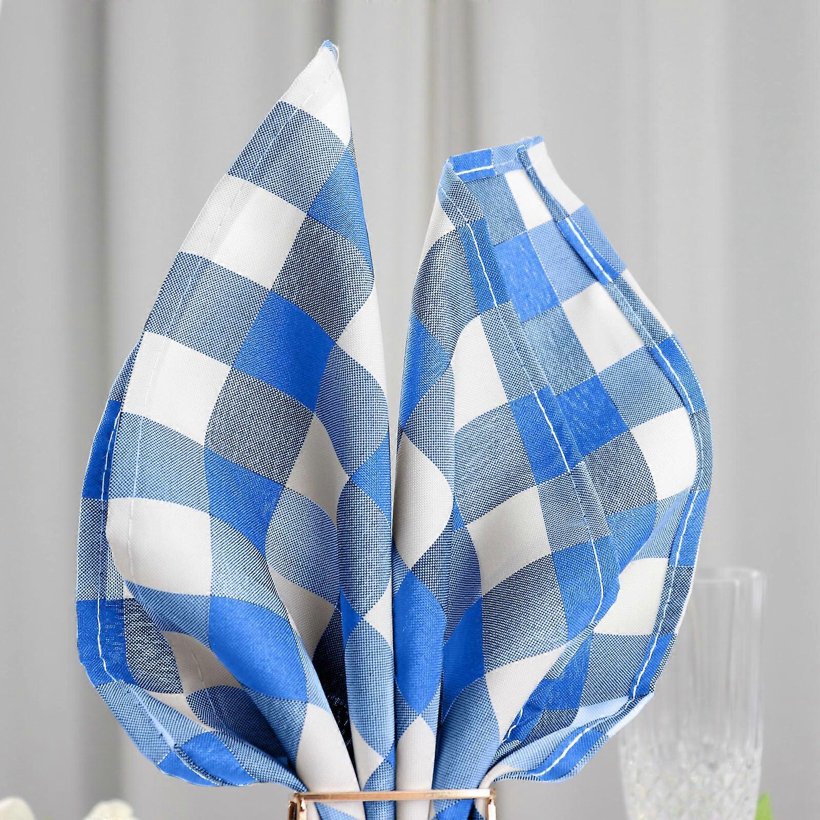 Pack of 5 Premium Blue/White Washable Checkered Gingham 15" x 15" Linen Picnic Napkins Great for Wedding Party