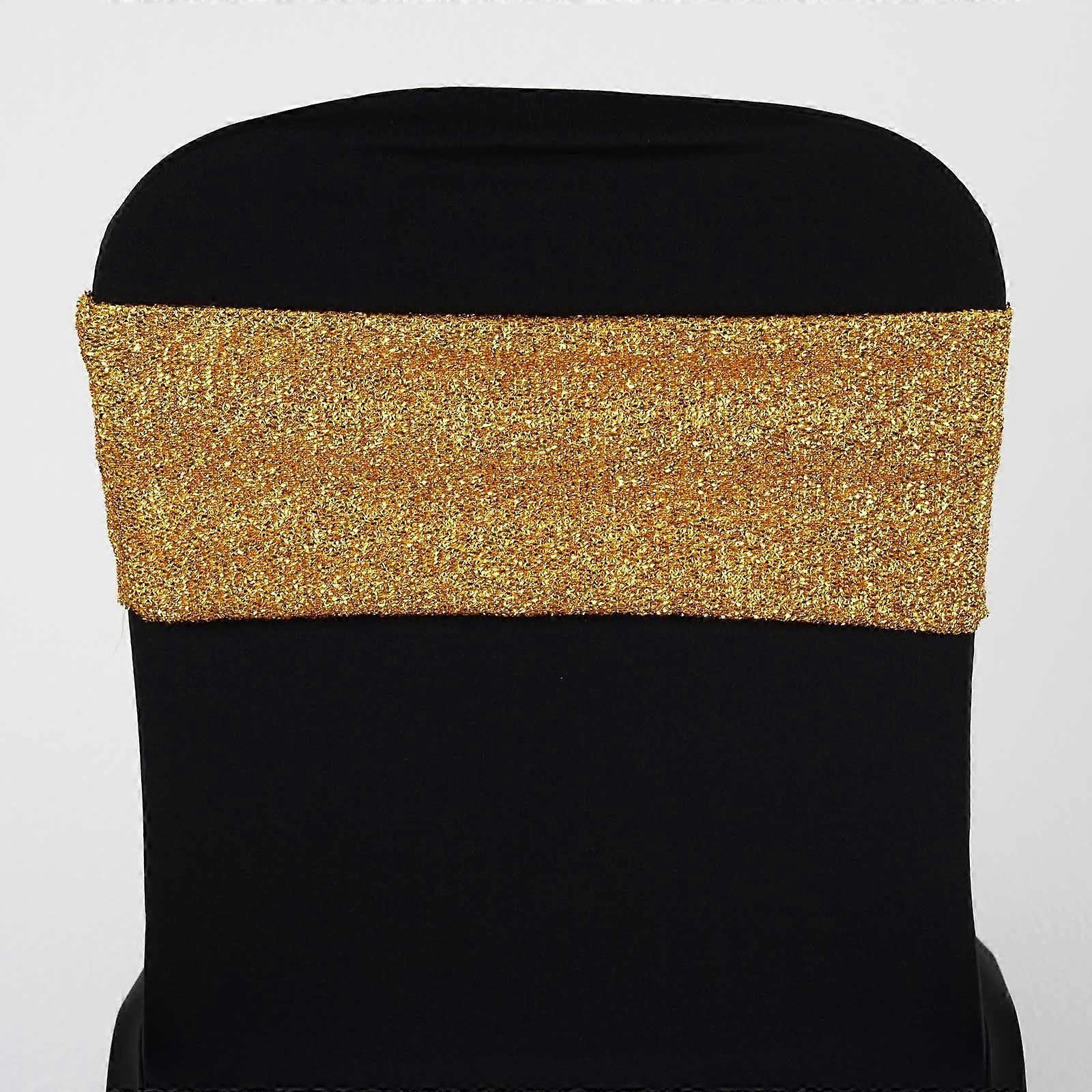 5 PCS Gold Metallic Shiny Glittered Spandex Chair Sashes for Wedding Banquet Decor Chair Bow Sash Party Decoration