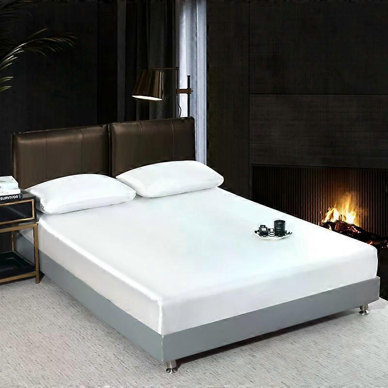 Luxury Satin Fitted Sheet High-End Solid Color Mattress Cover With Elastic Band Bedsheet Single Double Queen King Size Fit Sheet