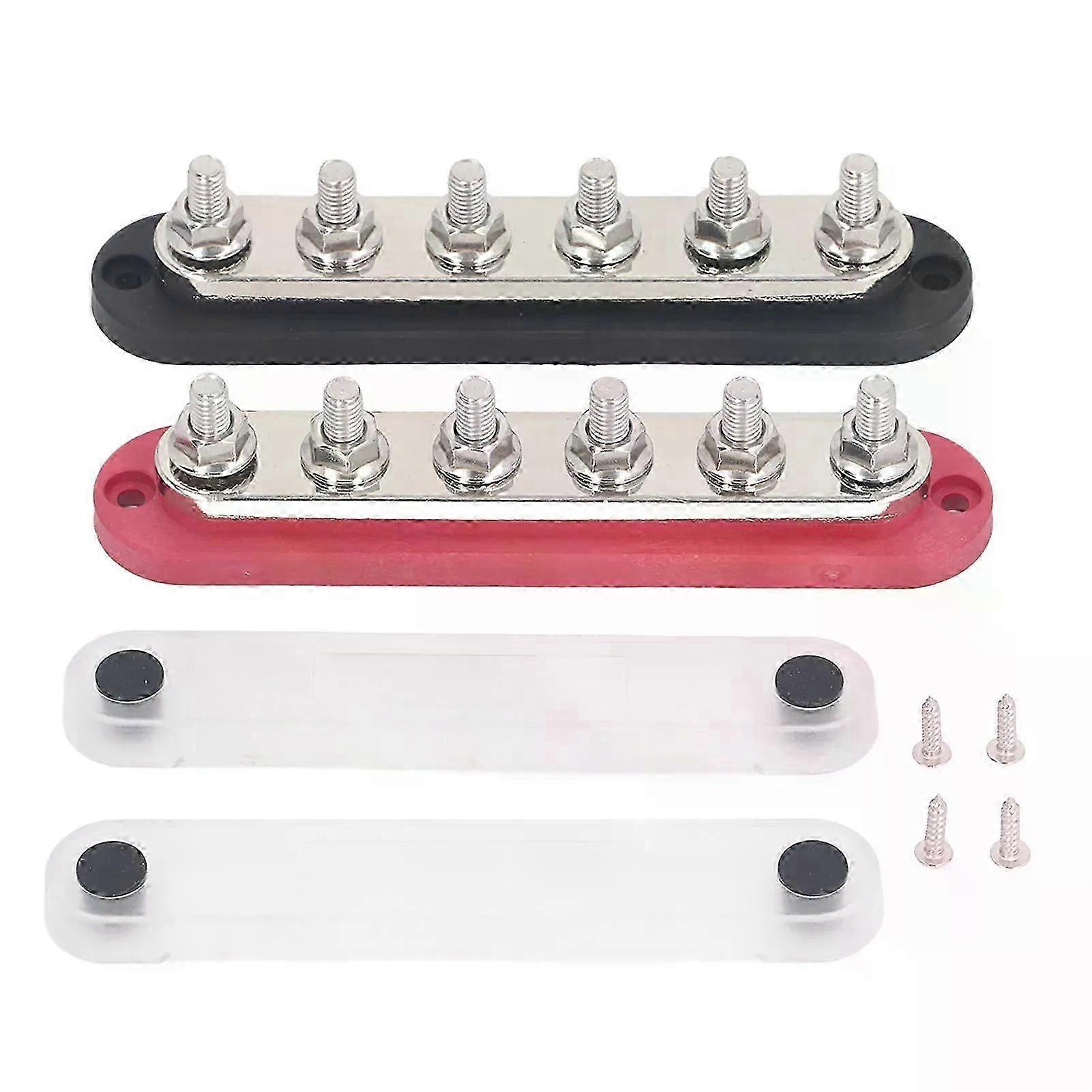 Two M8 300A 12-48V power distribution modules with brass and stainless steel bus terminals, suitable for automotive, marine, and other marine componen