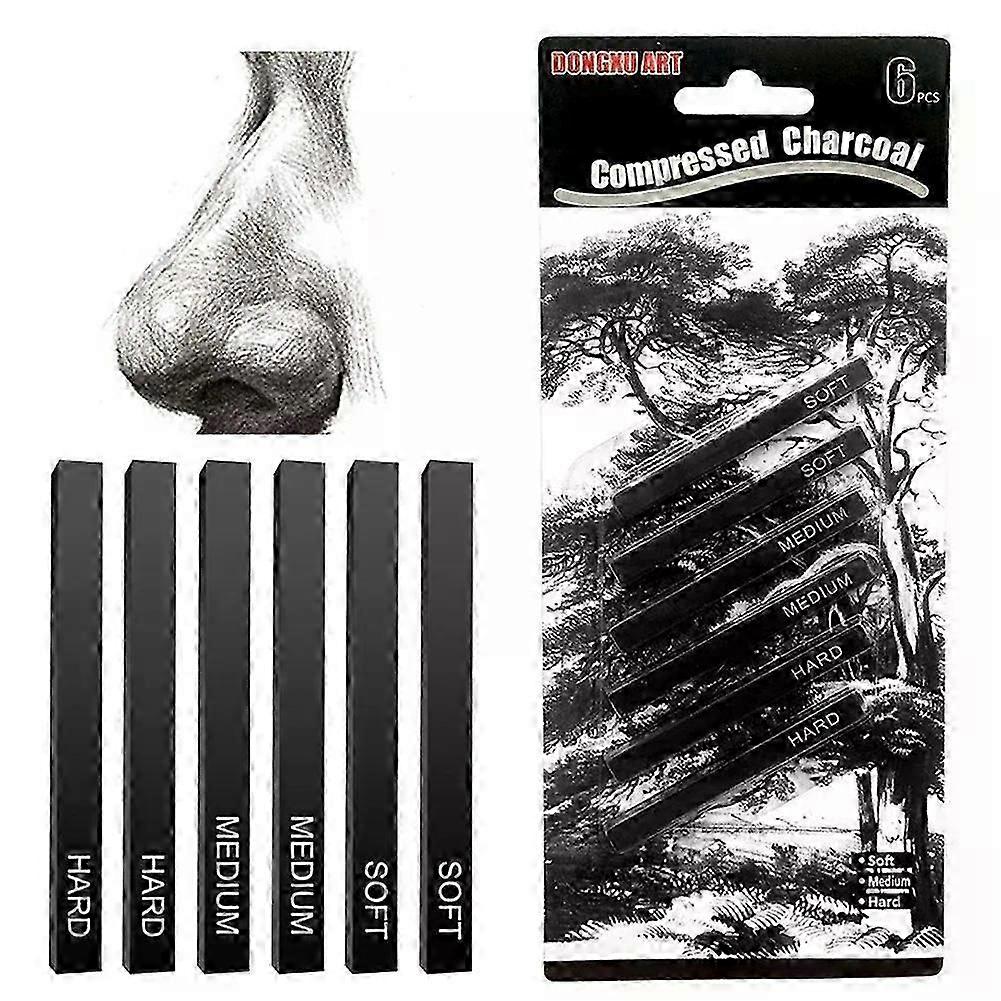 6-piece professional black and white charcoal pencil sketching set, available in hard, medium, and soft pencils. Charcoal pencils not included. Suitab