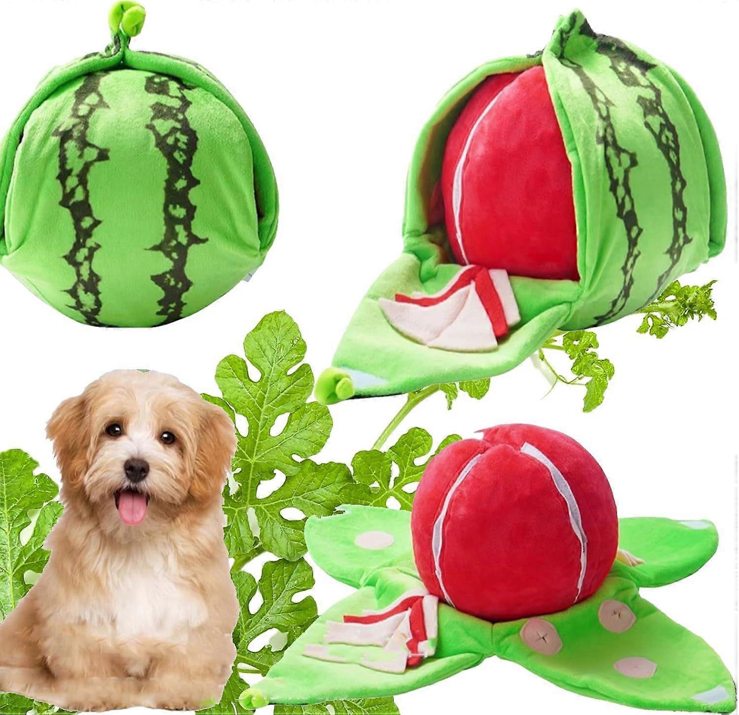 Orange & Watermelon Snuffle Dog Toys Interactive Plush Puzzle with Squeaker & Crinkle Paper Hide-and-Seek Nosework for Mental Stimulation Durable E