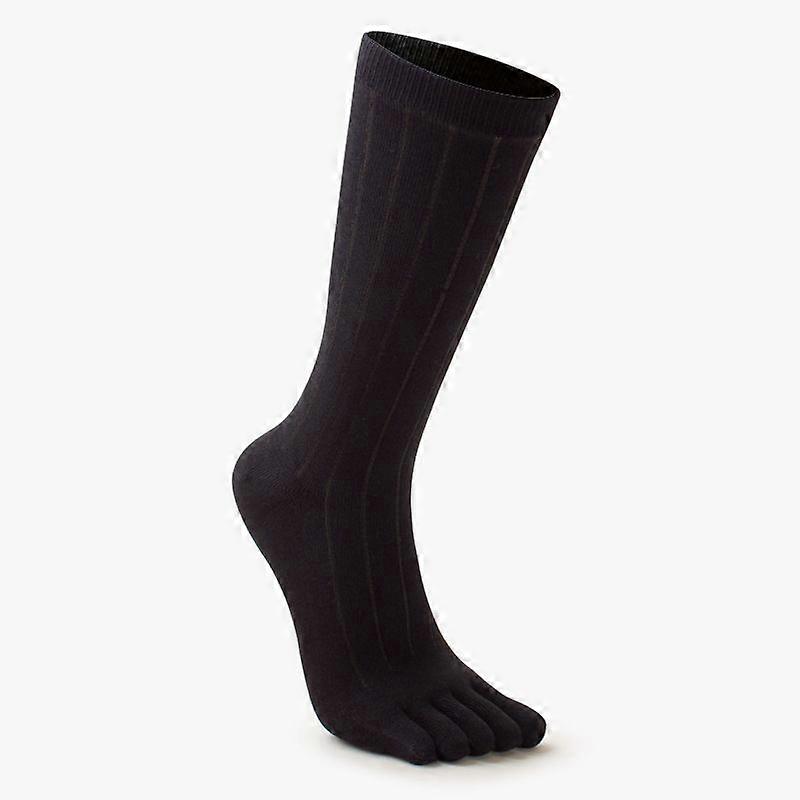 5pcs Men's Knee-High Cotton Toe Socks, Breathable Sweat-Wicking Socks