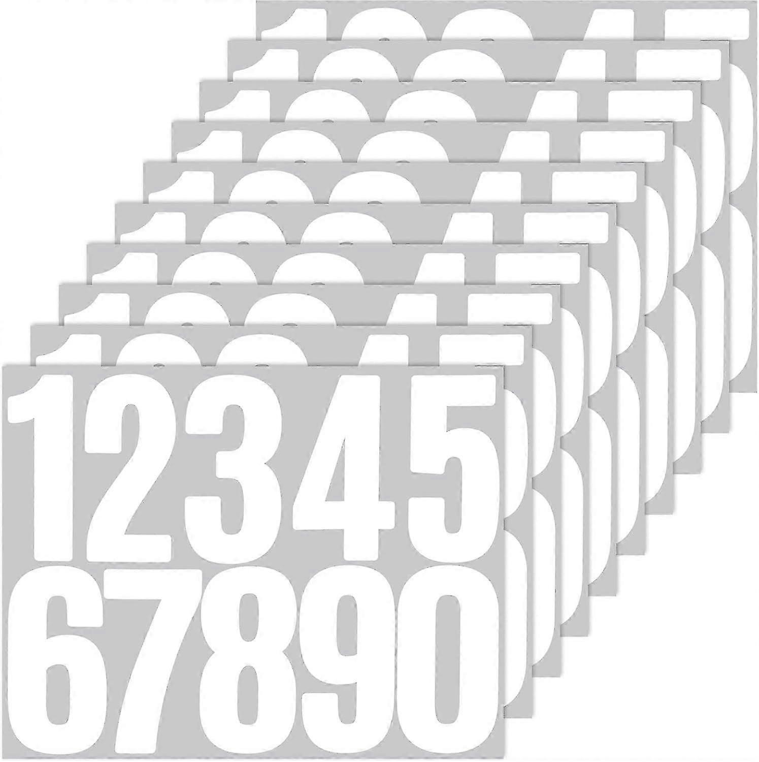 100 house number stickers, vinyl material, self-adhesive, waterproof and reflective, white.