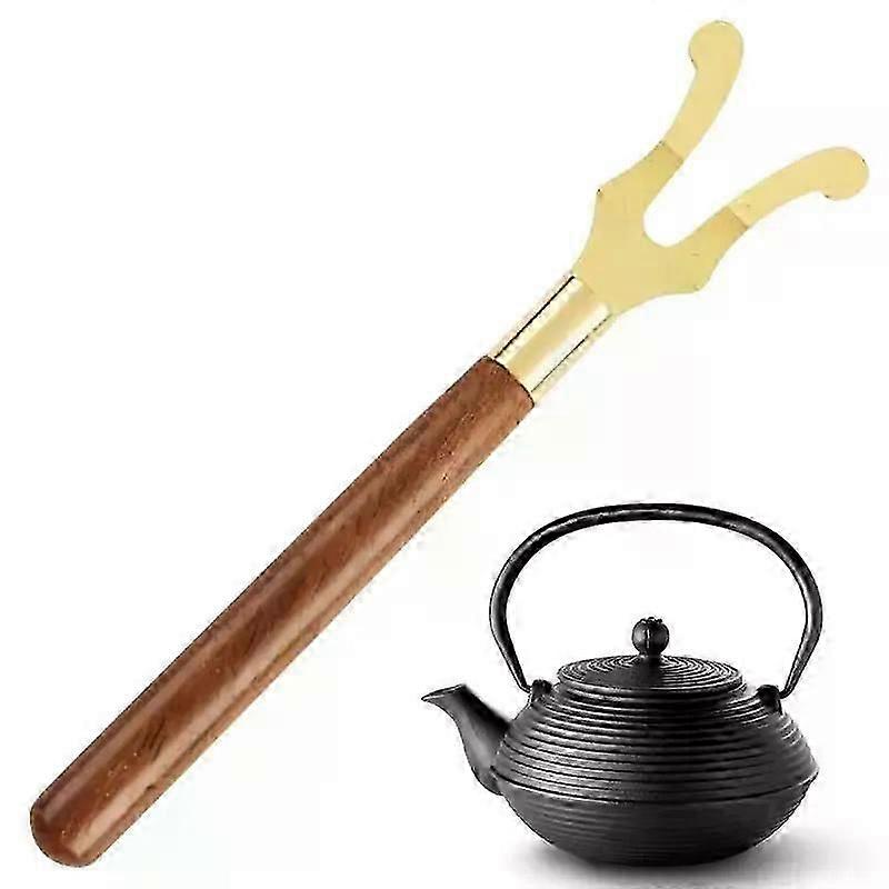 Teapot lid clip with wooden handle, teapot lid fork, suitable for cast iron hot teapots, heat-insulating teapot lid fork.