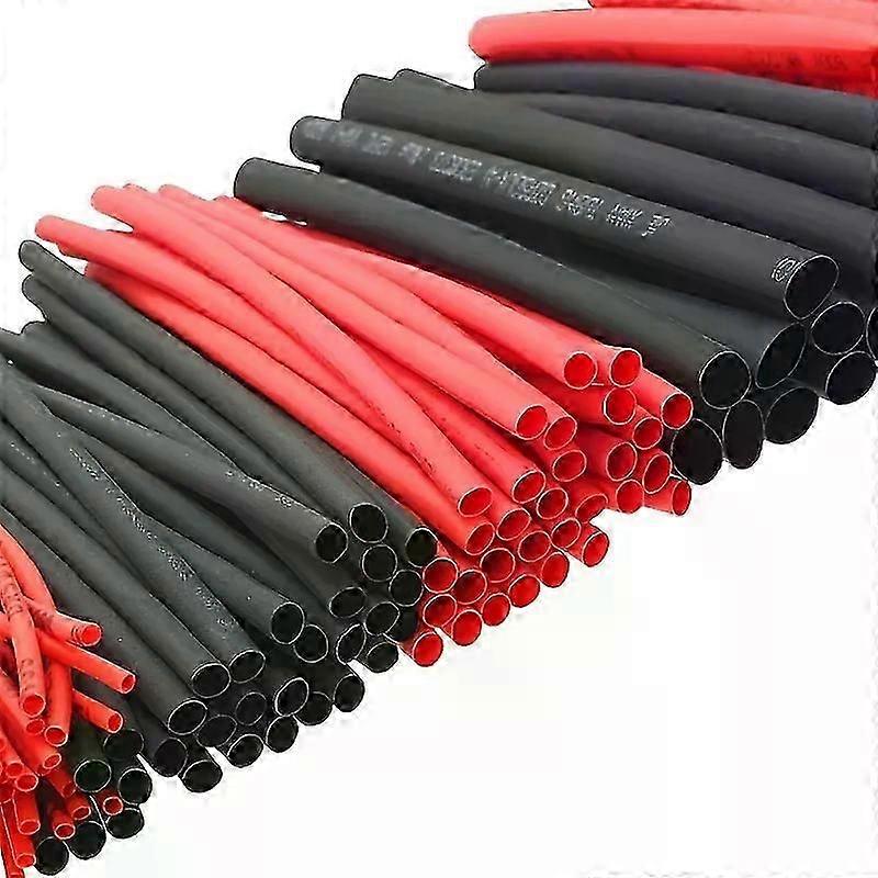 127-piece pack of black and red heat shrink tubing, 2:1 grade polyolefin tubing, suitable for automotive cable sheathing kits.