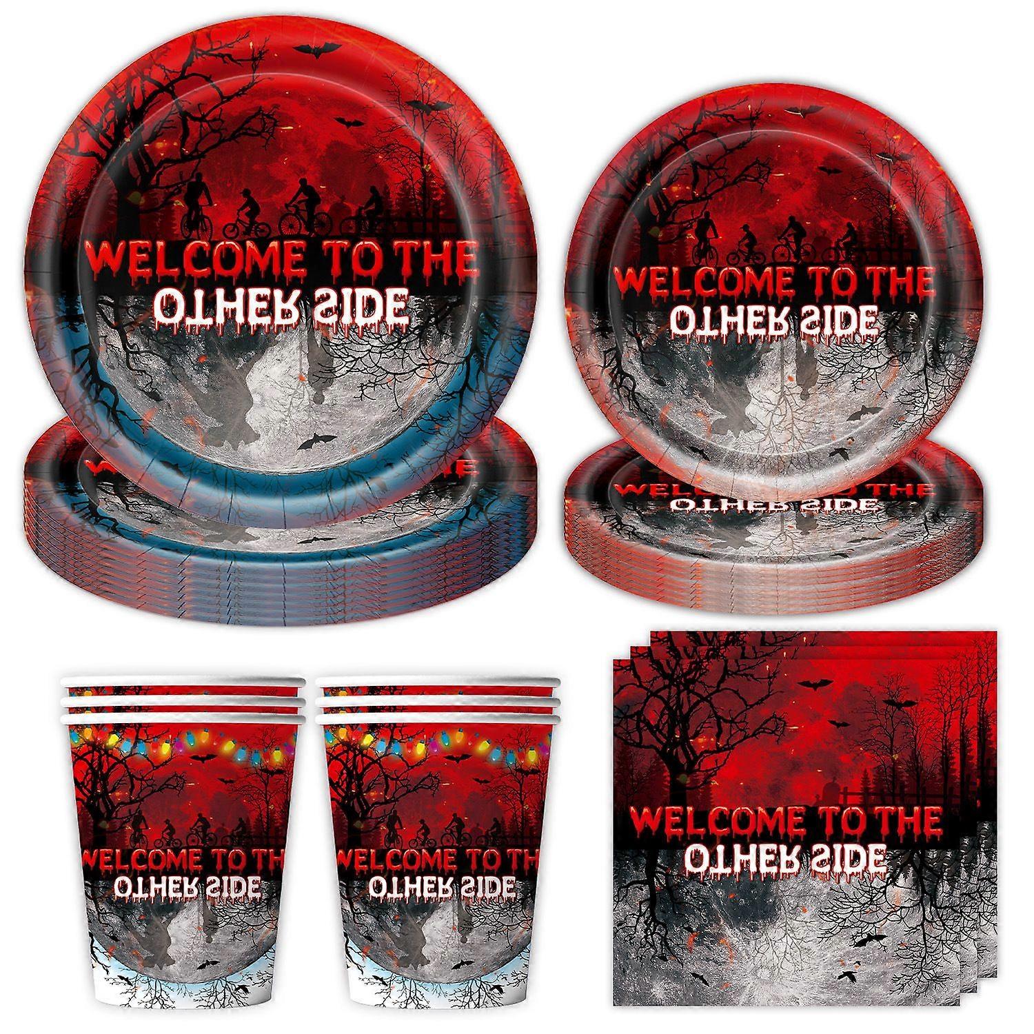 Welcome to The Other Side Halloween Party Supplies Set Spooky Forest Horror Themed Paper Plates, Napkins, Cups & Cutlery Disposable Tableware for Ha