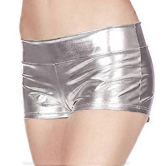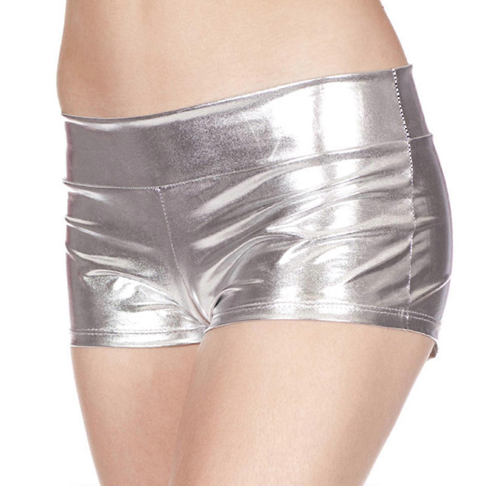 Faux Leather Wetlook Festival Dance Shorts for Women - Silver XL Size, Rave Dance Booty Hot Pants