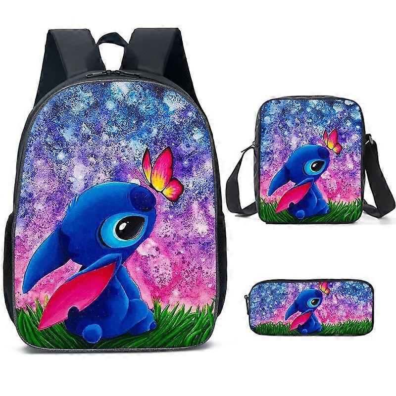 Anime cartoon Stitch three-piece backpack for primary and secondary school students, Stitch 3D printed school bag, travel backpack, children's school