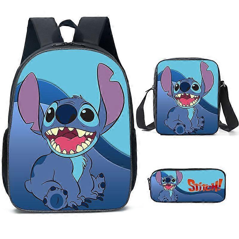 Anime cartoon Stitch three-piece backpack for primary and secondary school students, Stitch 3D printed school bag, travel backpack, children's school