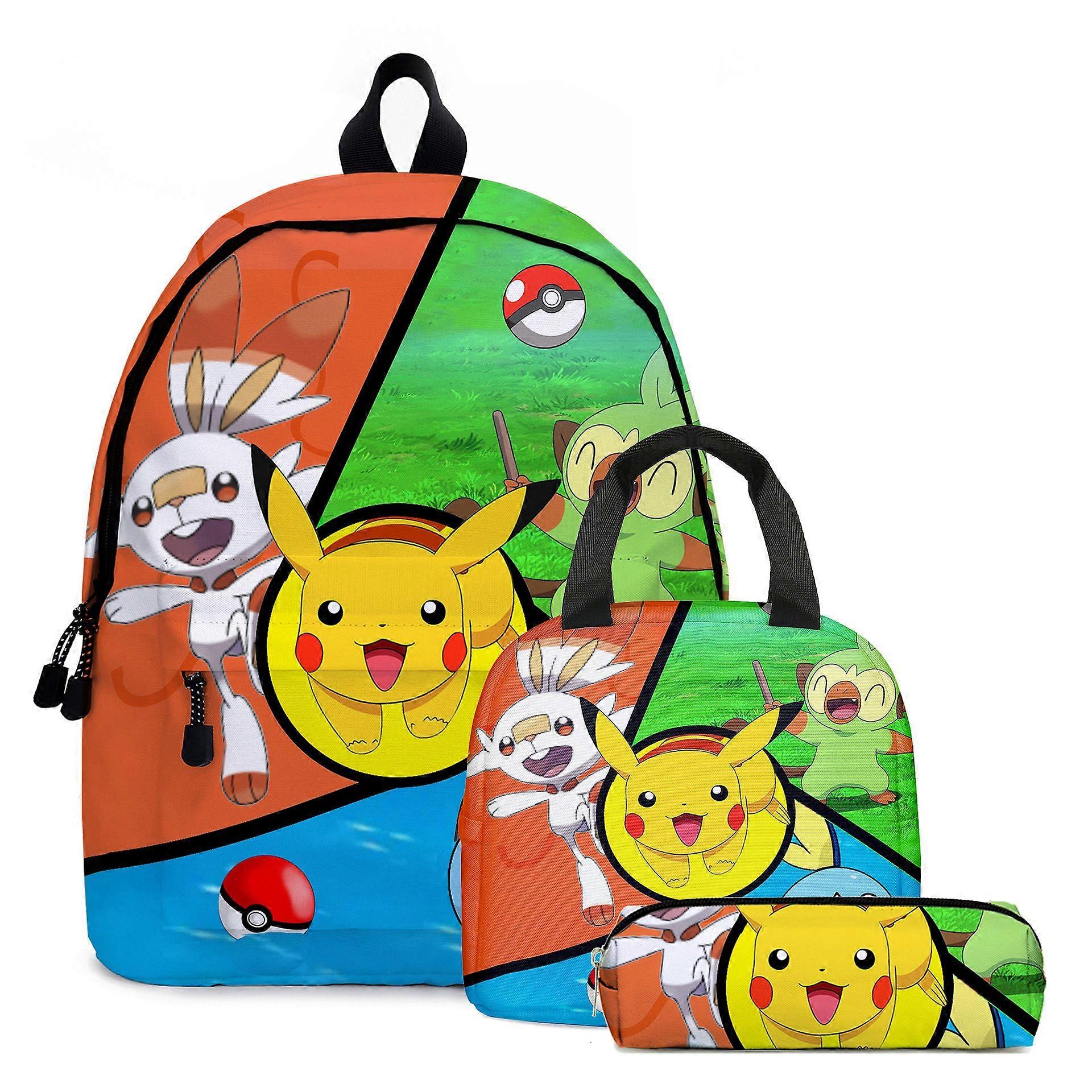 Pikachu cartoon backpack two-piece set Pokemon student school bag pencil case Pokemon lunch bag Pokemon children's backpack, Pikachu first day of scho