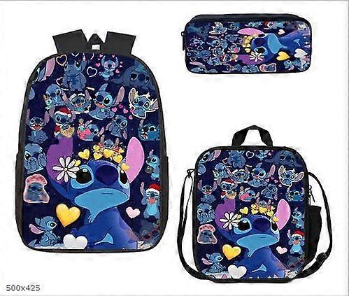 Anime cartoon Stitch three-piece backpack for primary and secondary school students, Stitch 3D printed school bag, travel backpack, children's school