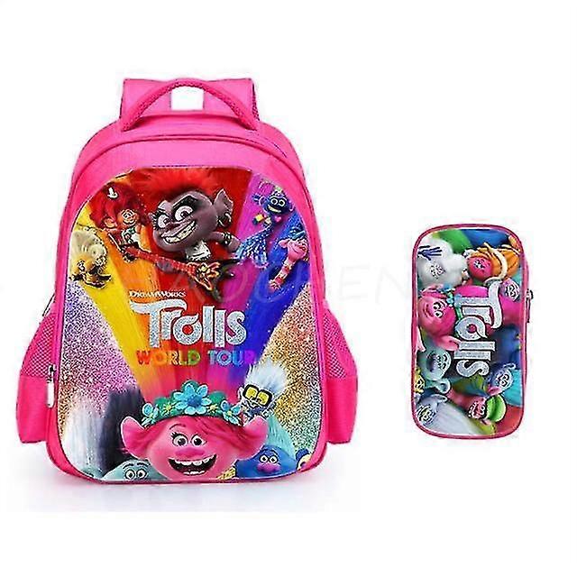 Fashion Trolls 2 Bags Cute Children Teen Girls Schoolbag Casual Orthopedic Backpack With Pencil Case For Kids Girl 16 Inch SHZNV