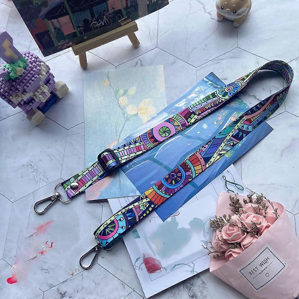 Portable Nylon Mobile Phone Lanyard Retro Pattern Design Adjustable Straps Handbag Wide Colored Straps Handbag Belt for Unisex